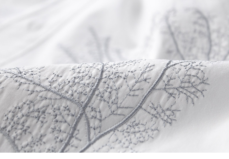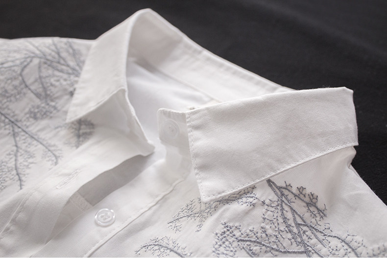 原创新款白色衬衫女中长款长袖百搭休闲欧范刺绣树枝棉衬衣打底衫