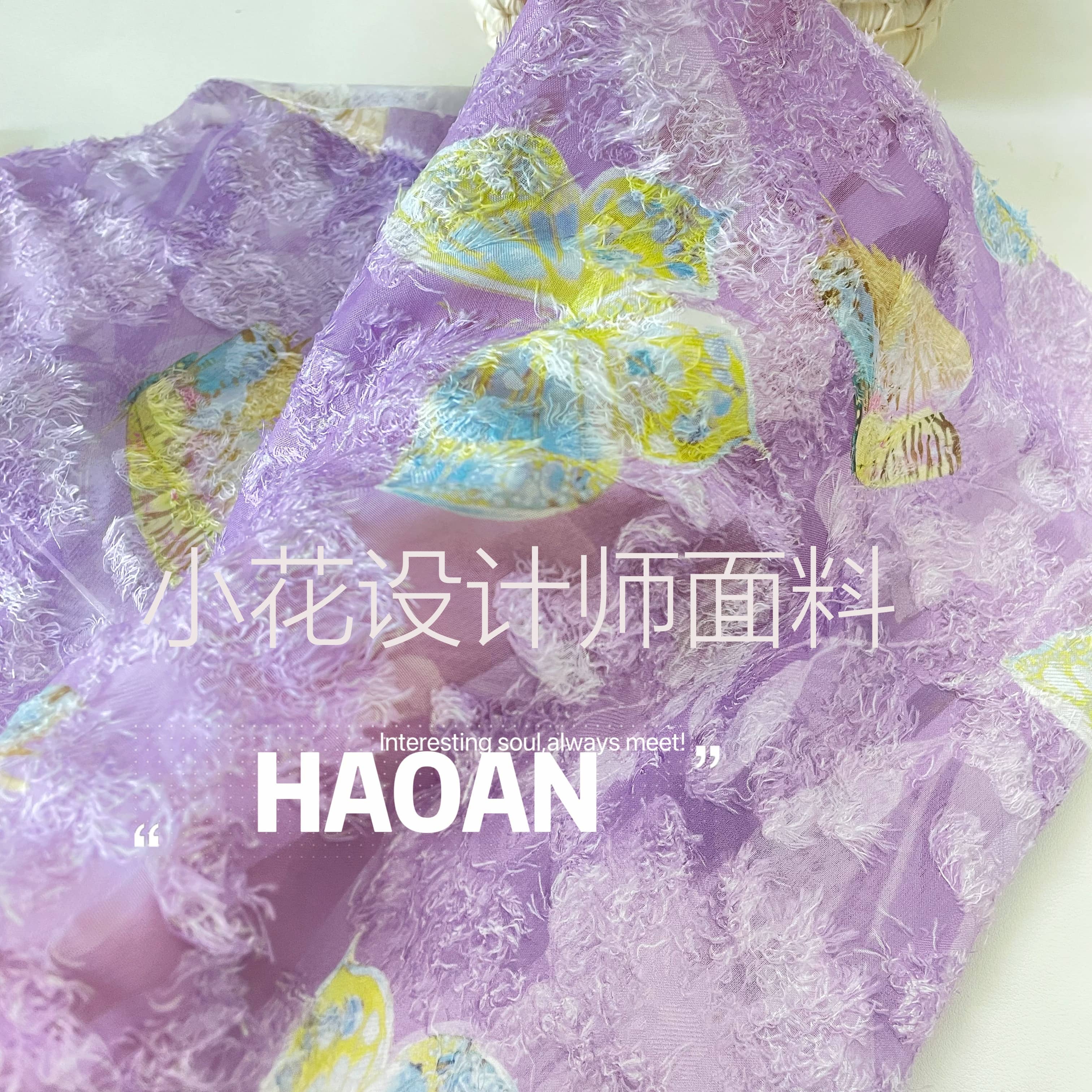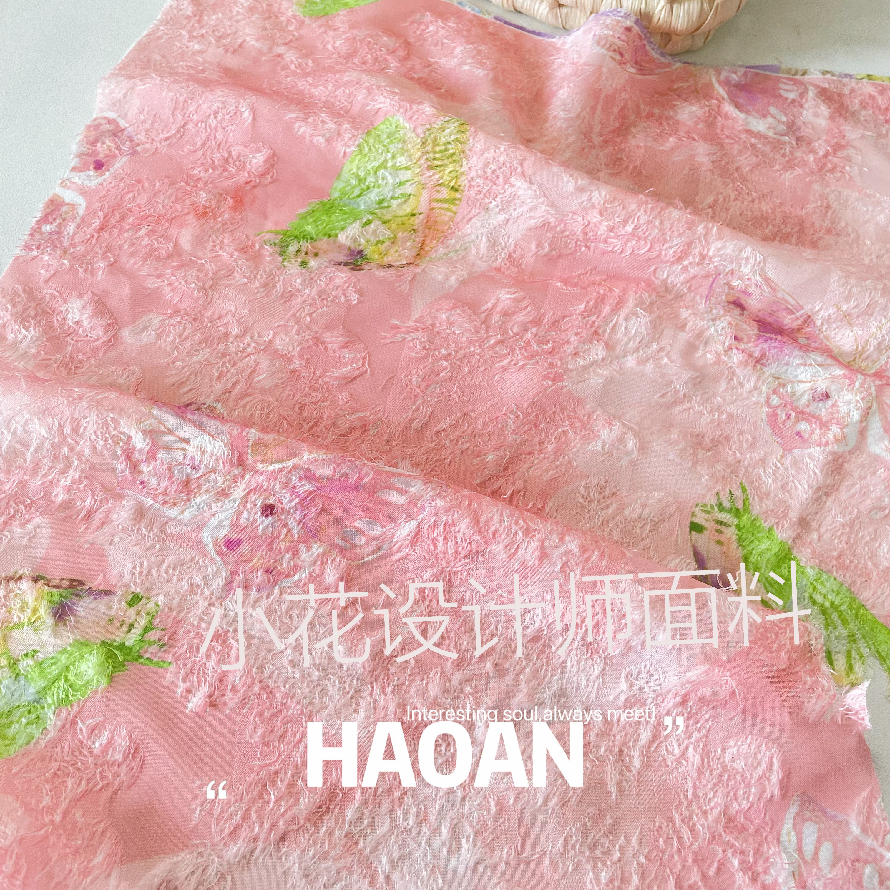 新中式蝴蝶印花提花衬衫连衣裙汉服布料 黄粉色旗袍女装面料