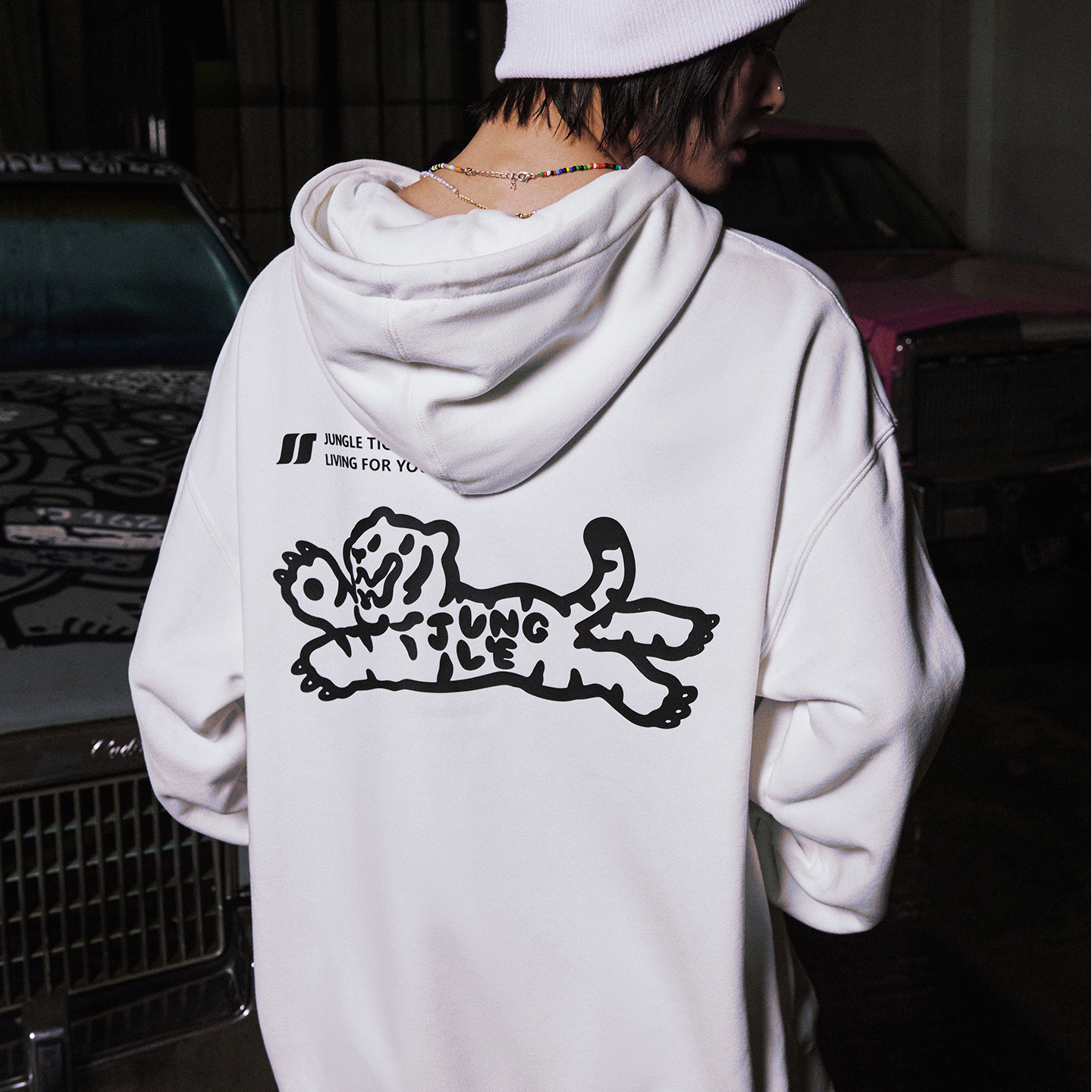丛林老虎潮牌奔跑老虎连帽卫衣男
