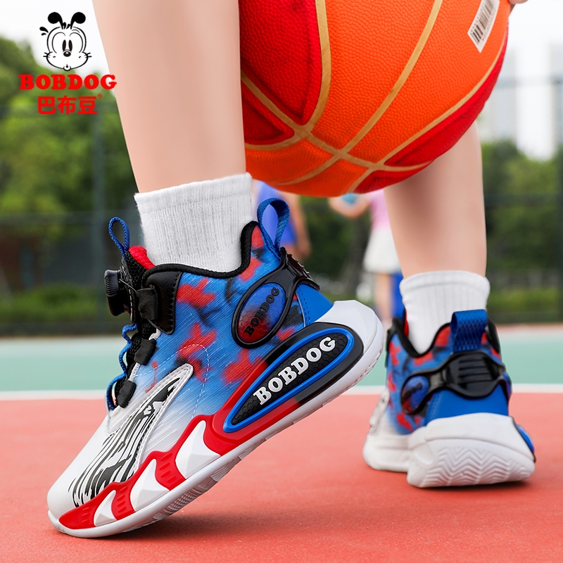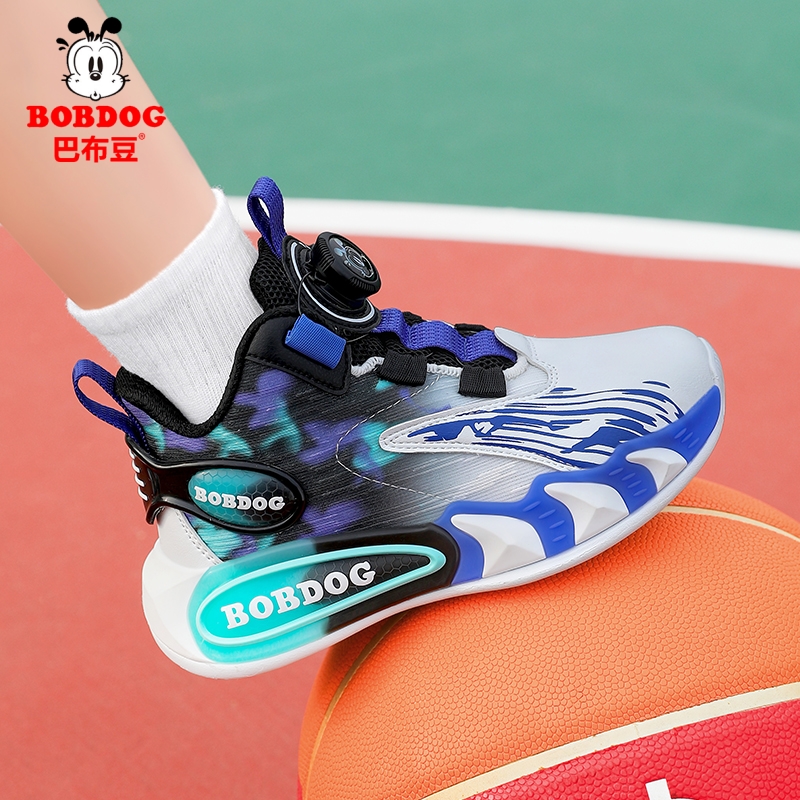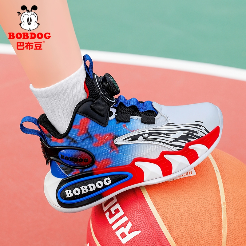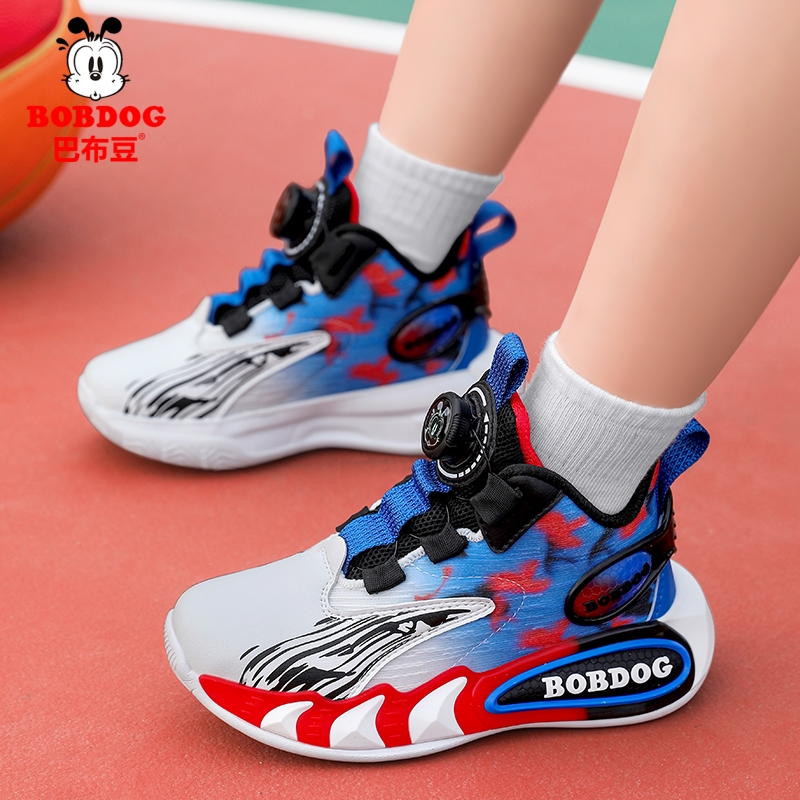 巴布豆男童篮球鞋春秋新款网面透气儿童运动鞋中大童旋纽扣跑步鞋