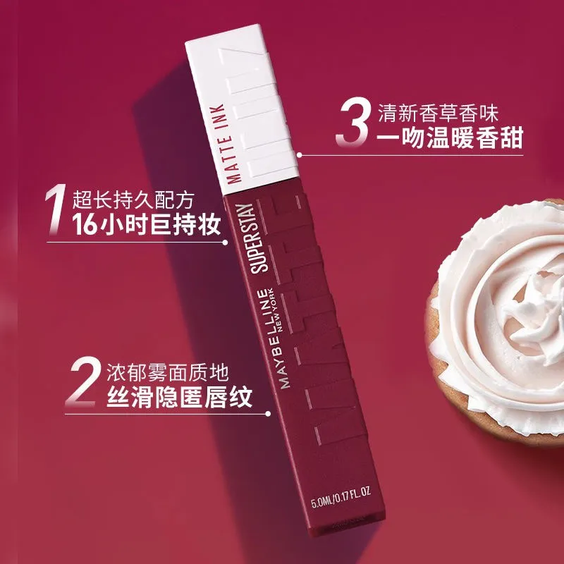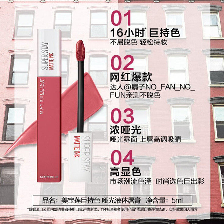 美宝莲SUPERSTAY接吻棒哑光液体唇膏口红唇118熟番茄不掉色不沾杯