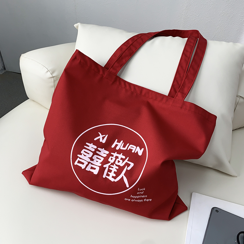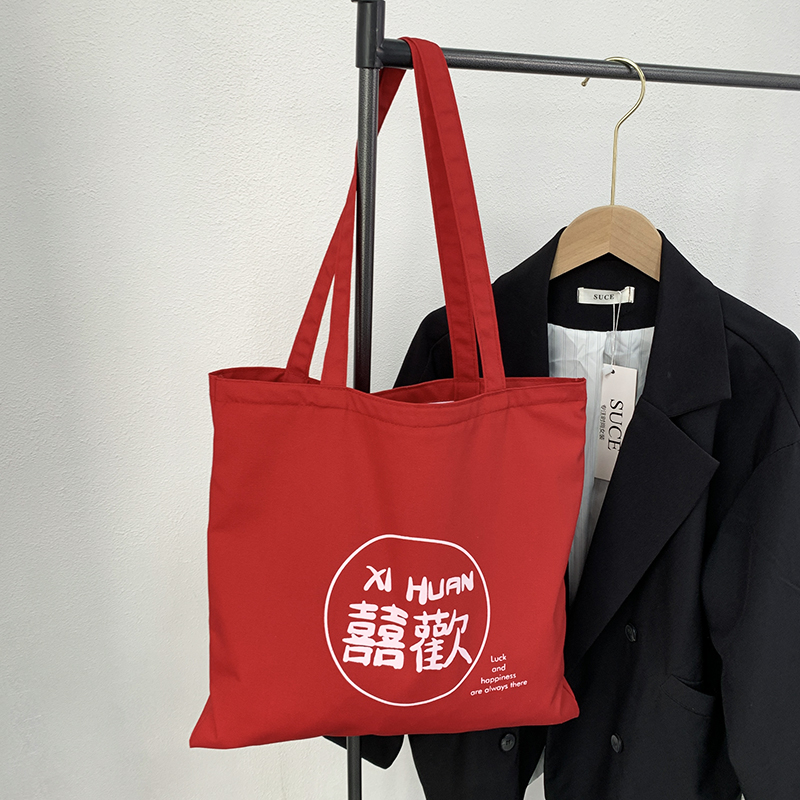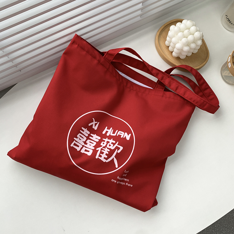 红色布袋包大号单肩包女学生上课装书包有拉链中式国风简约百搭