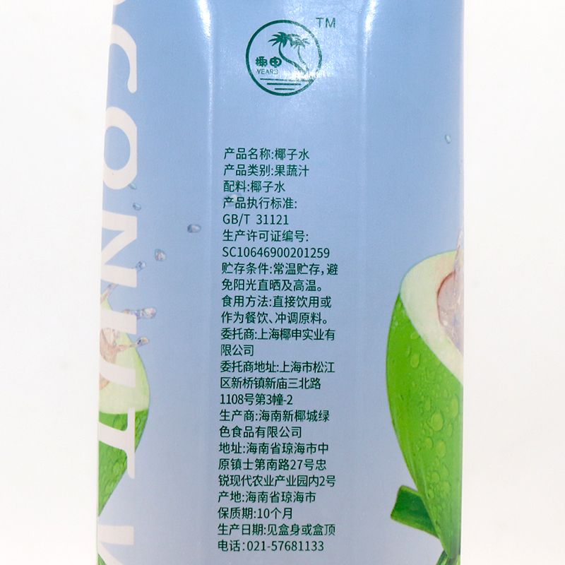 椰申纯椰子水补充天然电解质