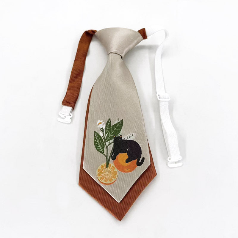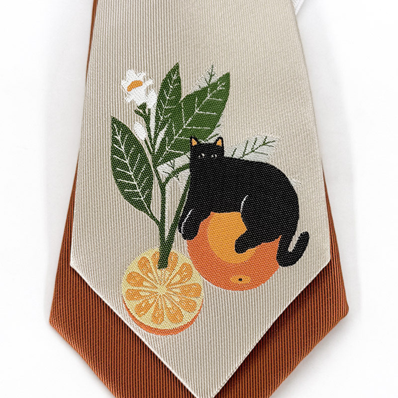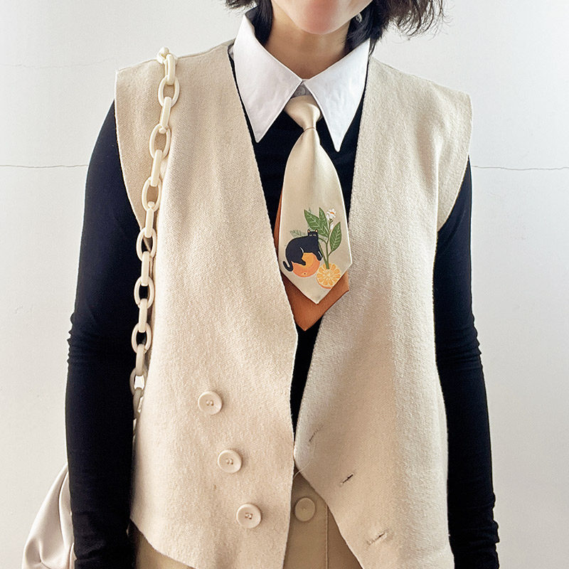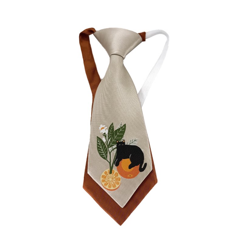 荷囊原创刺绣双层ins免打小领带咖色甜酷学院JK少女短款配饰橘猫