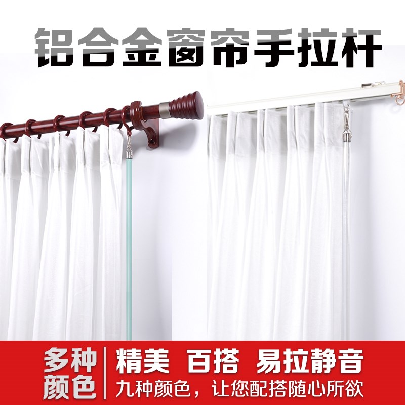 酒店工程窗帘手拉杆铝合金家用窗帘轨道拉杆撑杆手U动拉棒拉窗帘