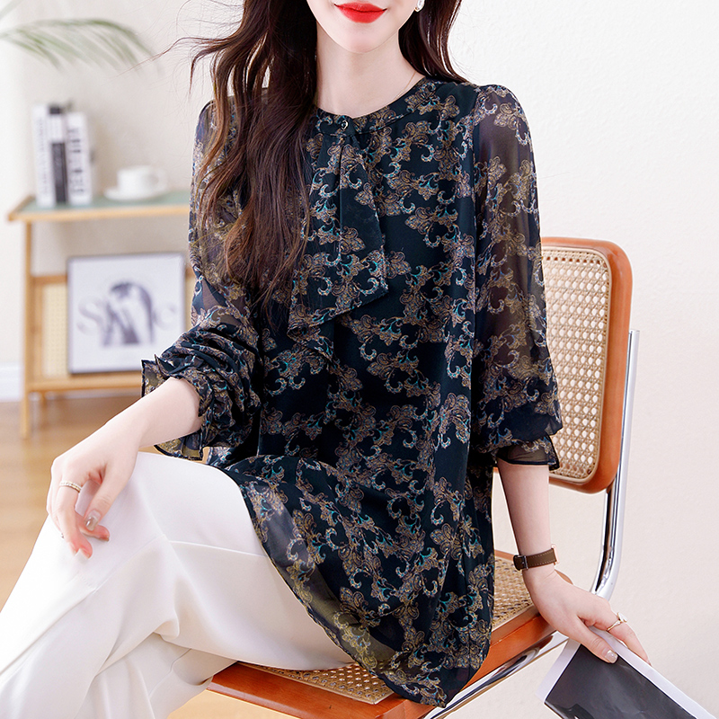 九月陌墨大码女装雪纺长袖衬衫2025年春秋新款设计感宽松遮肚上衣
