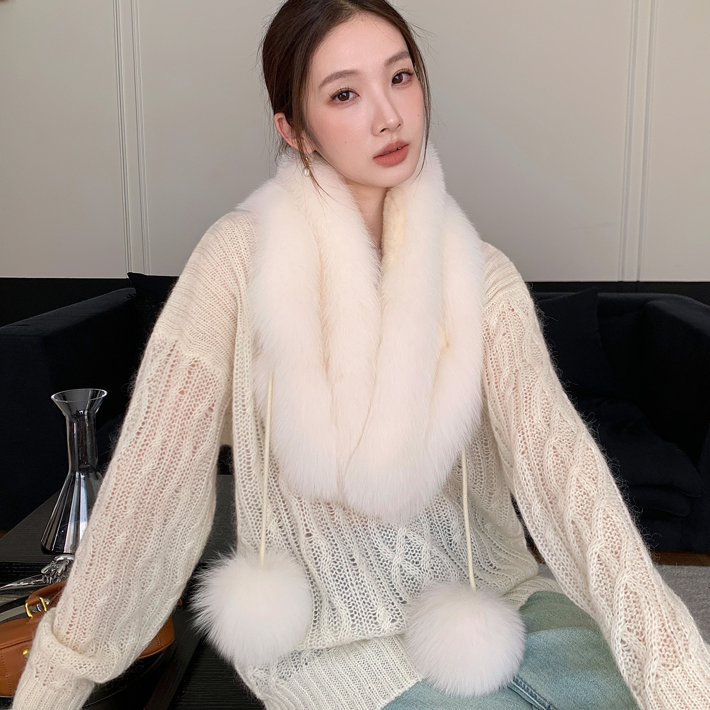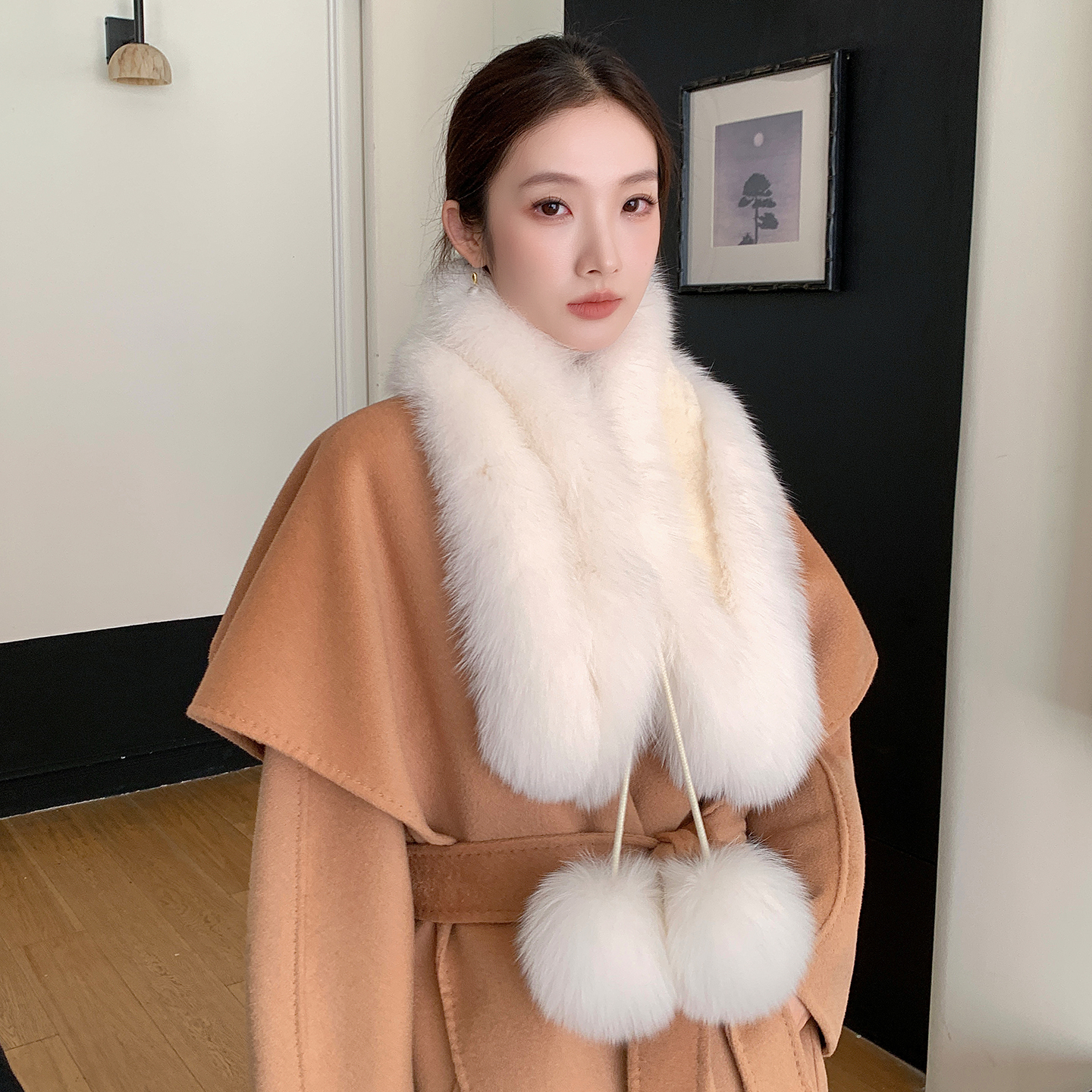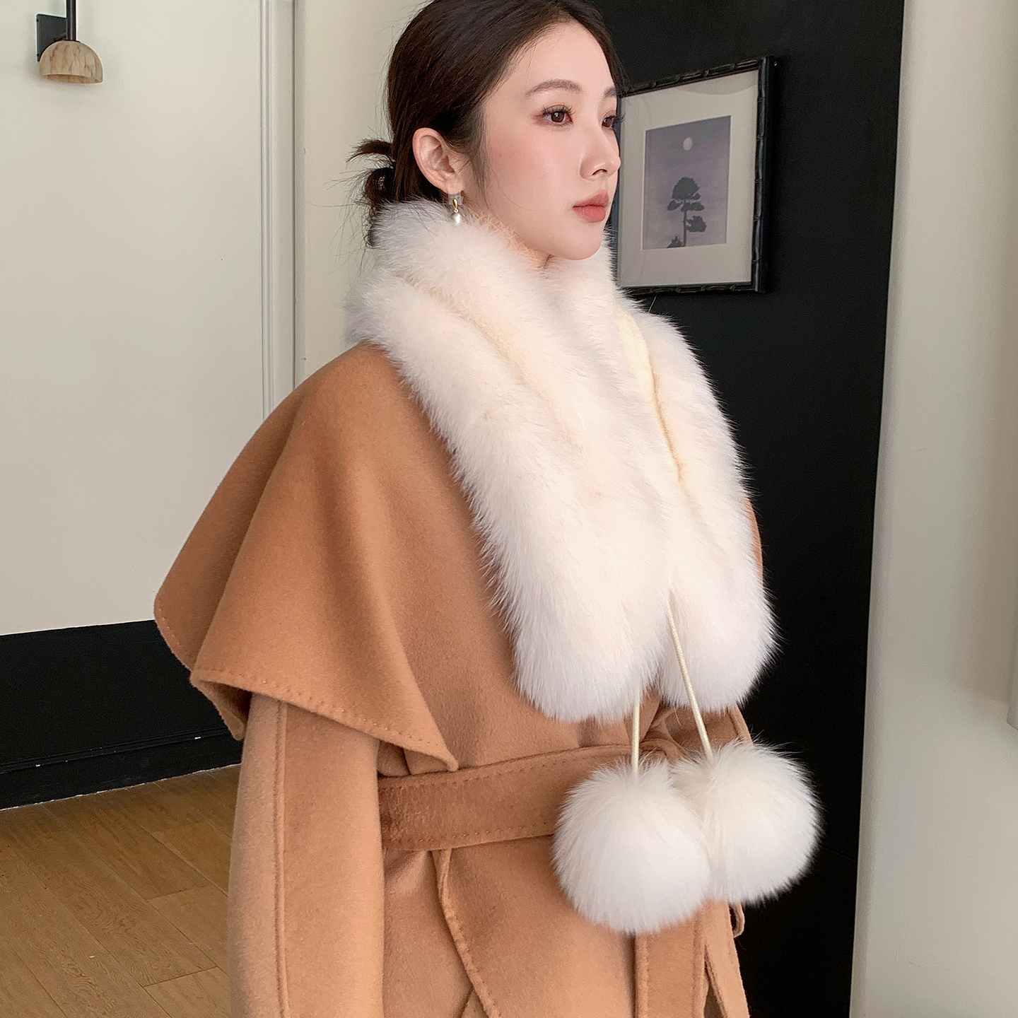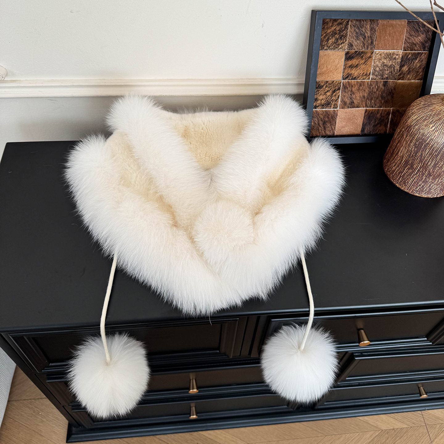 品质双面真毛小坎肩气质狐狸毛配獭兔毛球球可爱皮草披肩围巾新款