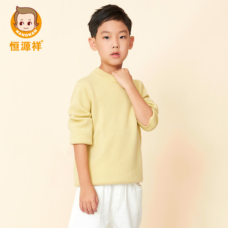 恒源祥男童纯色针织衫儿童保暖毛衣中大童秋冬加厚打底套头羊毛衫