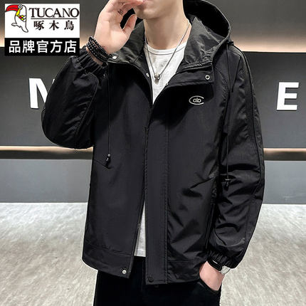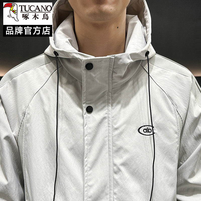 啄木鸟外套春秋季2026新款冲锋衣工装男宽松休闲连帽春装夹克衣服