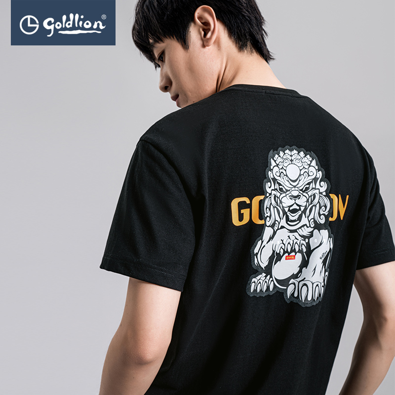 金利来夏季男短袖T恤纯棉个性时尚献钱狮印花休闲圆领T男