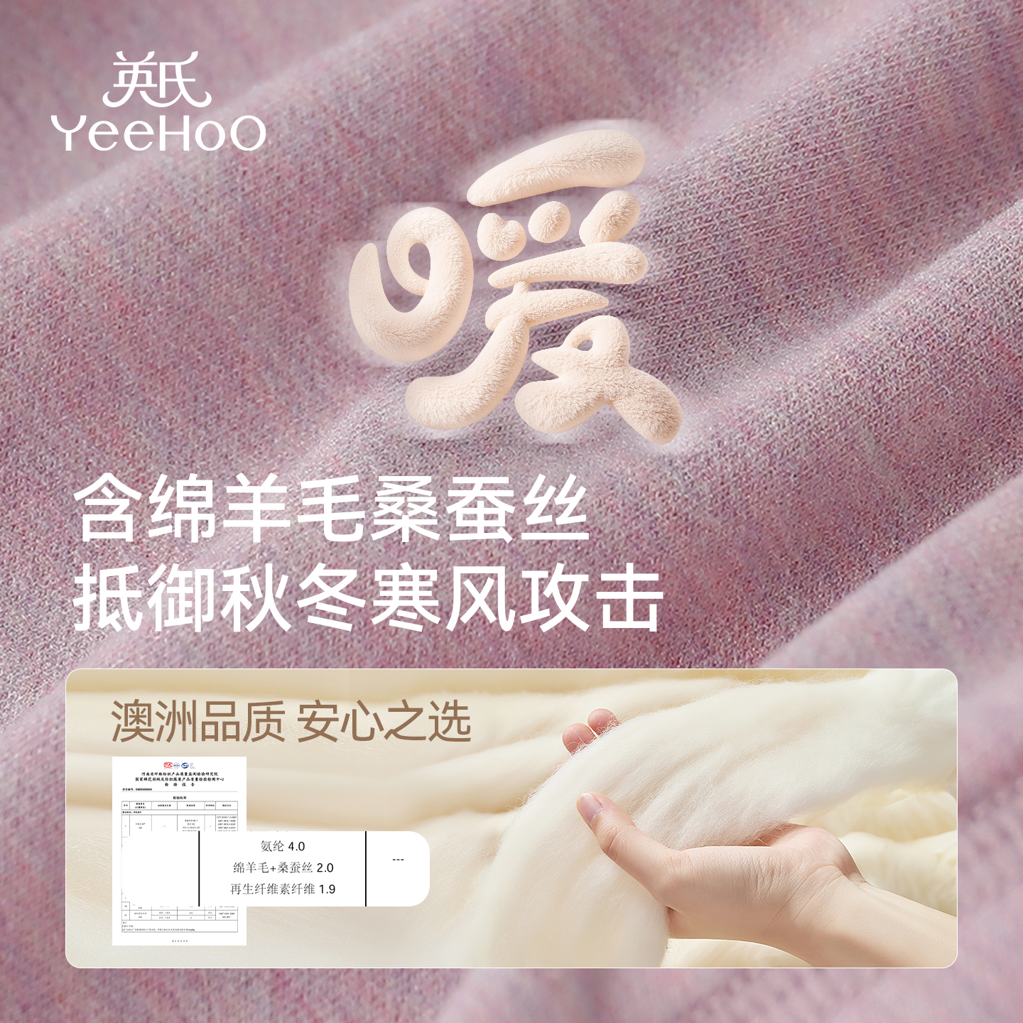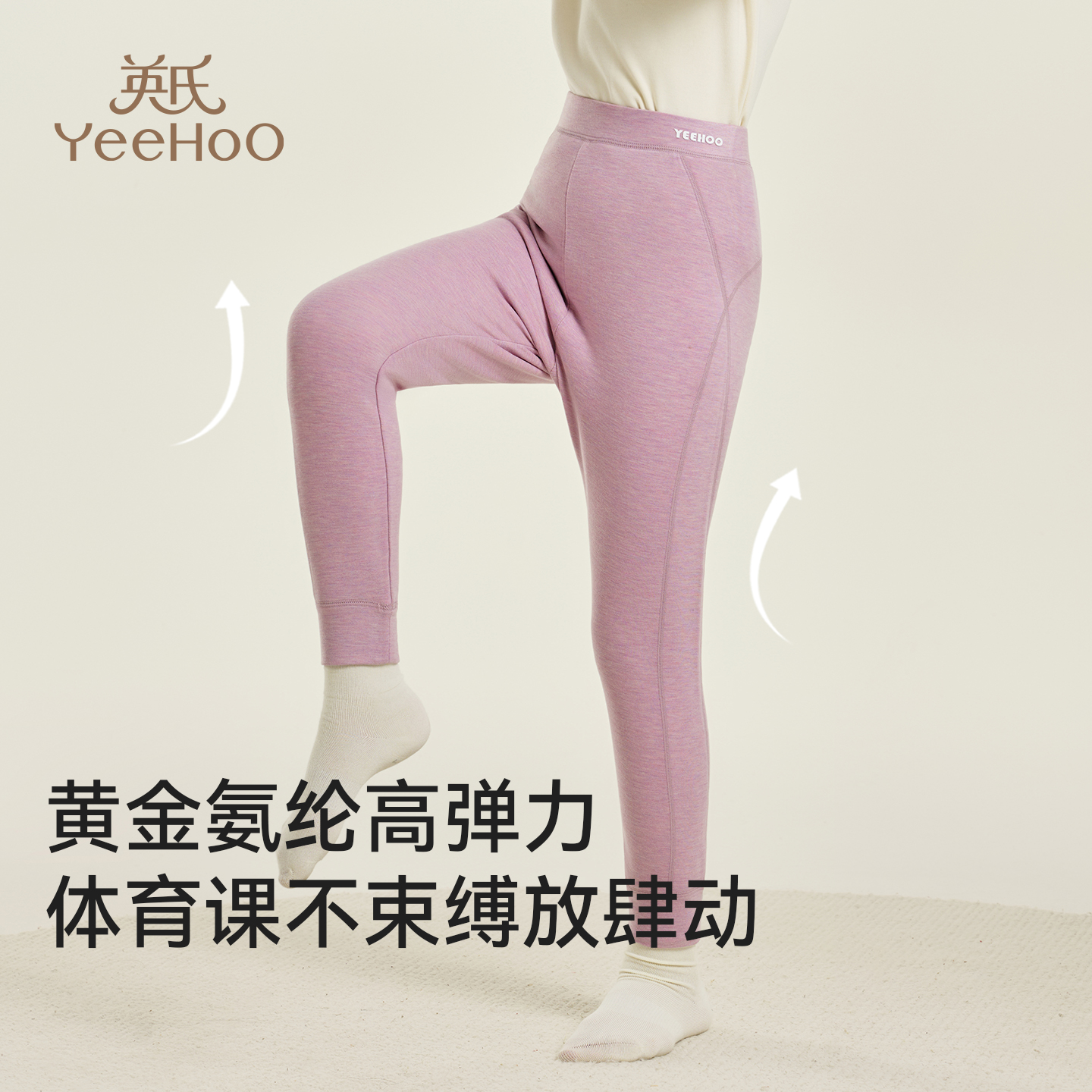 英氏儿童保暖裤羊毛桑蚕丝2025新款双层加厚男女童校服神器打底裤