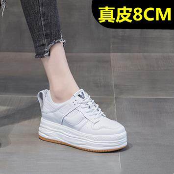 明星爆款厚底女鞋内增高8CM舒适真皮小白鞋2020春季新品休闲板鞋