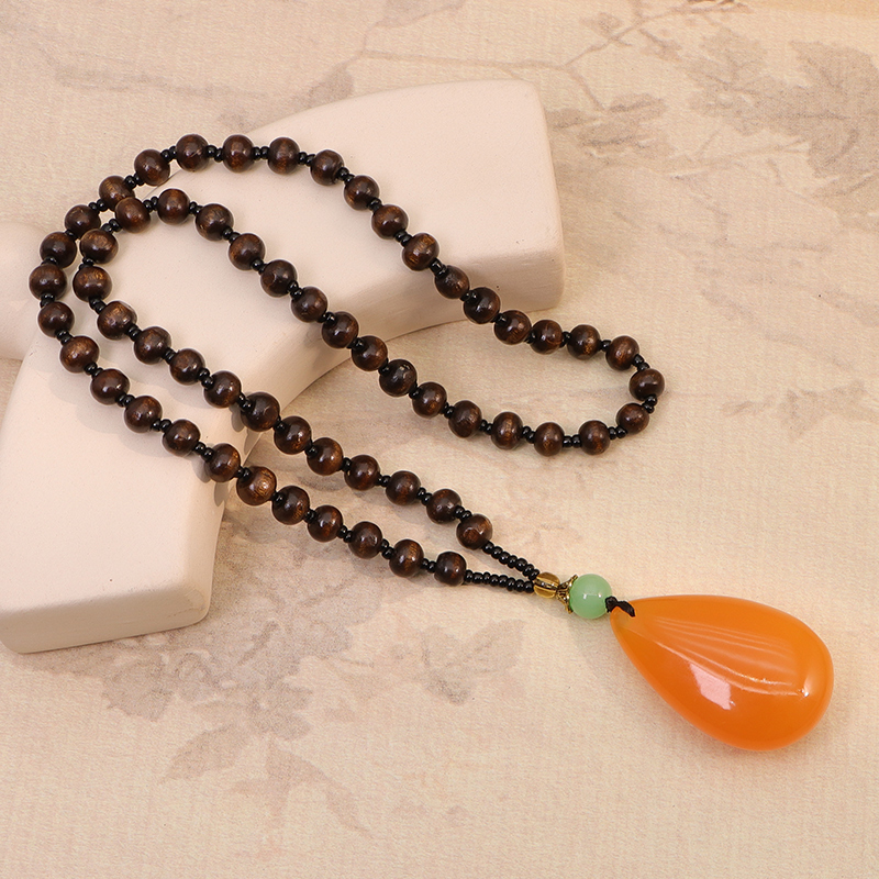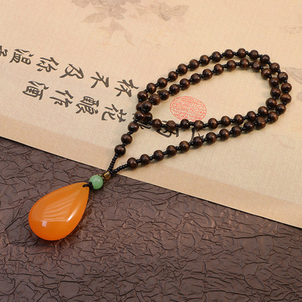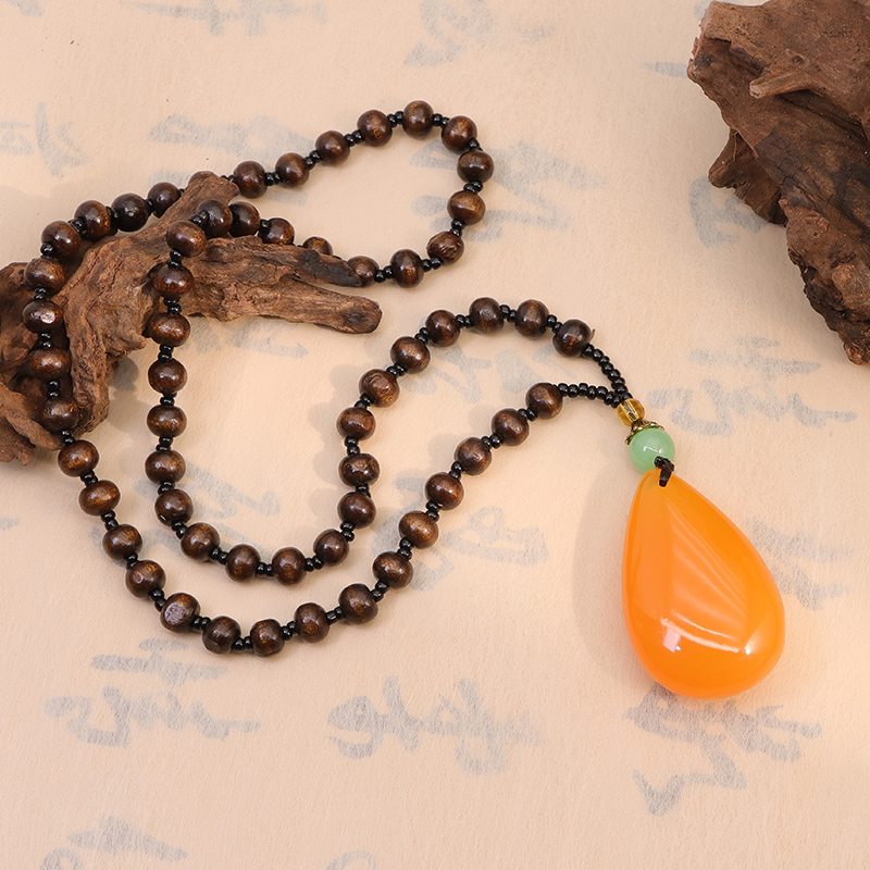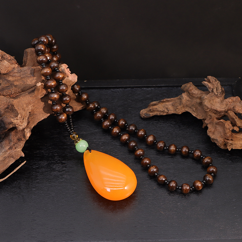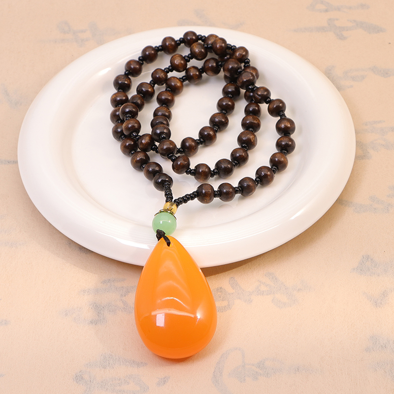 民族风老蜜蜡水滴项链琥珀长款毛衣链平安扣复古男女宽鸡油黄配饰