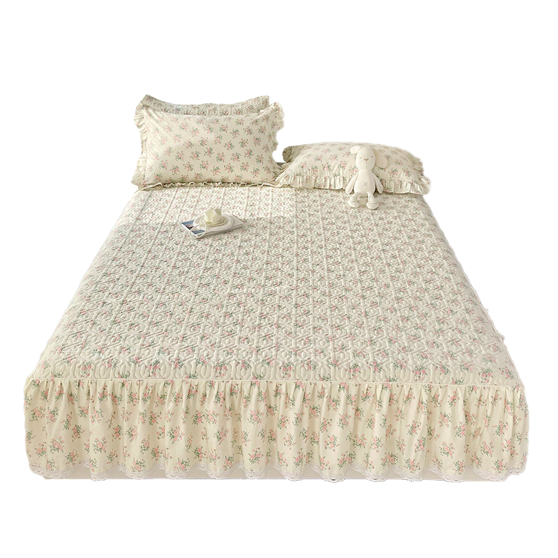 新款公主风纯棉加厚夹棉床笠床裙二合一全棉带裙边床罩单件防尘罩