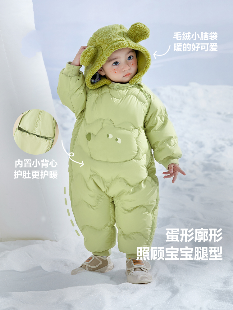 婴儿羽绒服连体衣宝宝冬装外套新生儿衣服男女童外出爬服保暖护肚