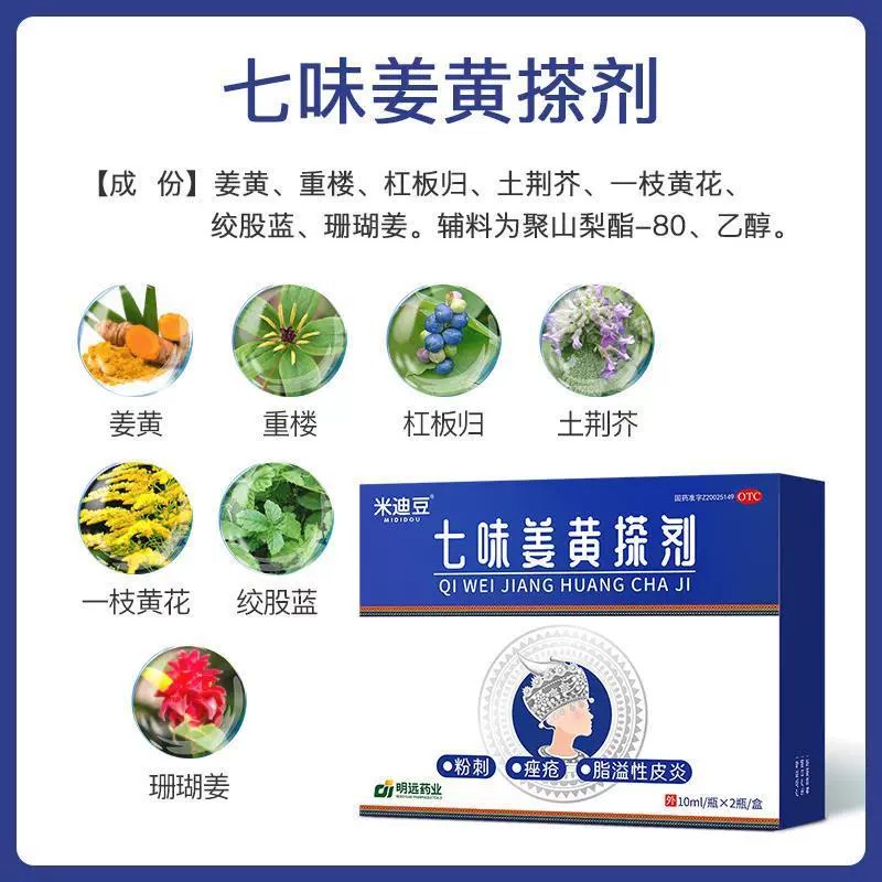 米迪豆七味姜黄搽剂快速祛痘大水滴祛痘精华淡化痘印收缩毛孔ZZ