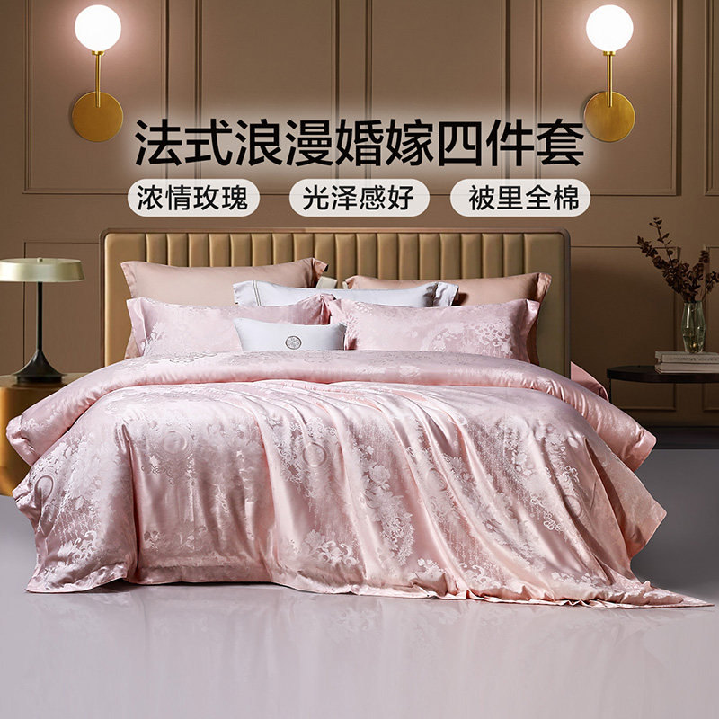 富安娜婚庆四件套粉色结婚被多件套装喜庆床单婚嫁提花新婚嫁套装