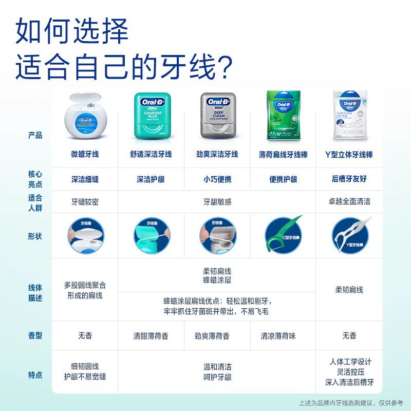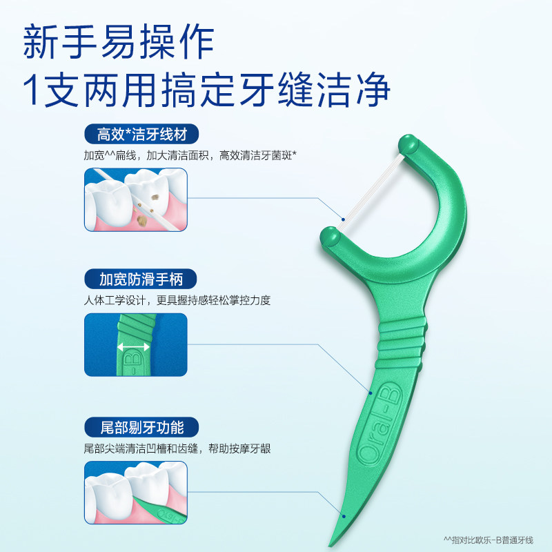 OralB欧乐B扁牙线便携舒适家用正品口腔清洁薄荷味牙线棒75/150支