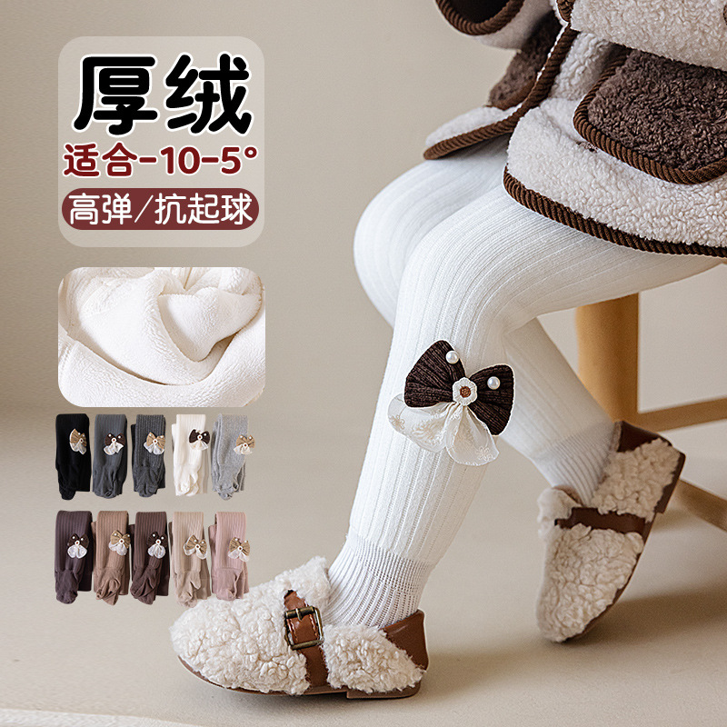 女童打底裤春秋薄款白色裤袜宝宝打底袜秋冬加绒加厚儿童连裤袜