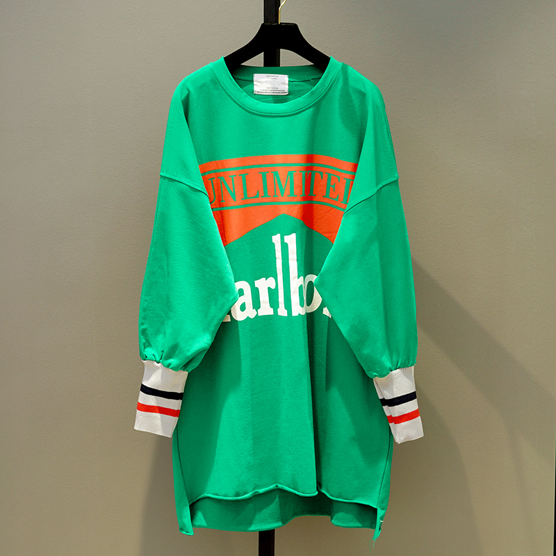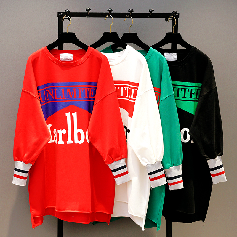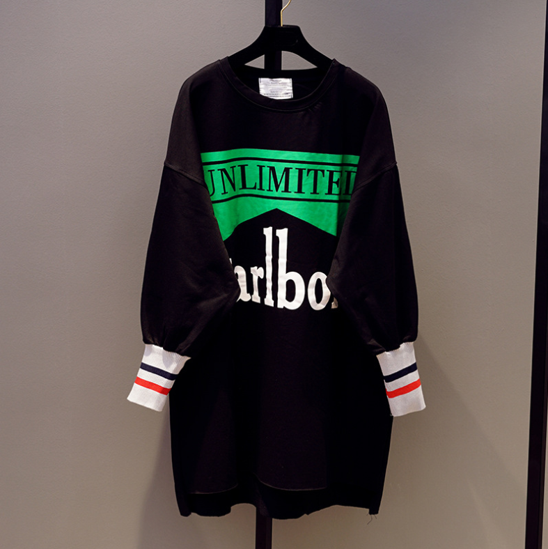 韩国东大门圆领宽松中长款卫衣女2025春秋新款遮屁股遮臀大码纯棉