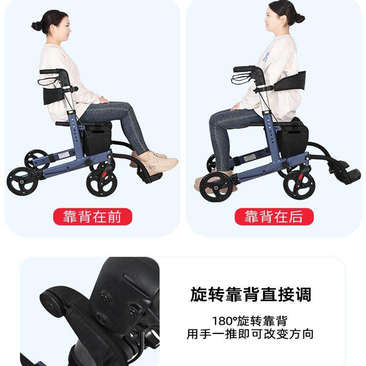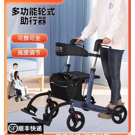 便携手推助行车家用老人代步车可折叠购物四轮买菜车可推可坐老年