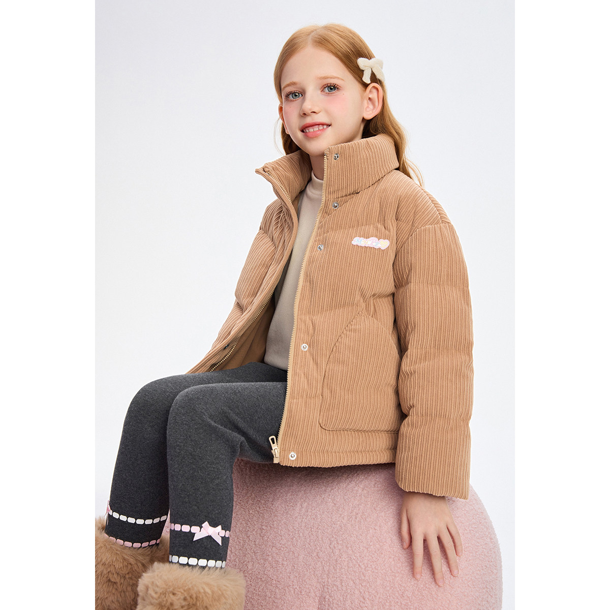 【御寒系列】太平鸟童装女童羽绒服冬新款灯芯绒保暖羽绒厚外套