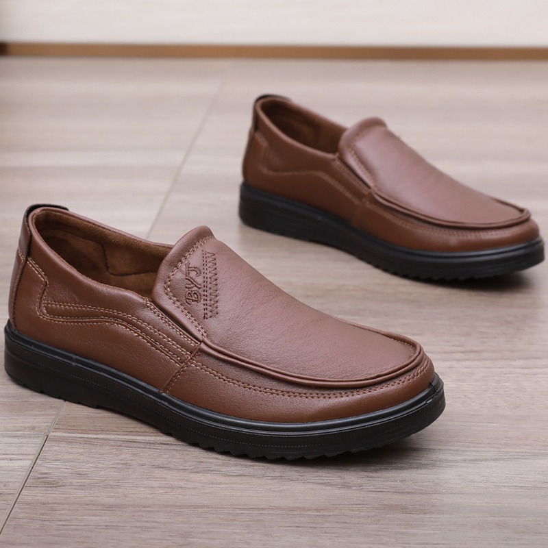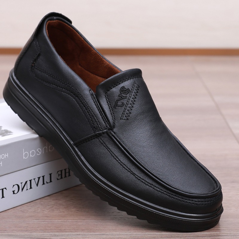 老北京布鞋男士休闲中老年爸爸鞋仿皮面商务工作大码一脚蹬男单鞋