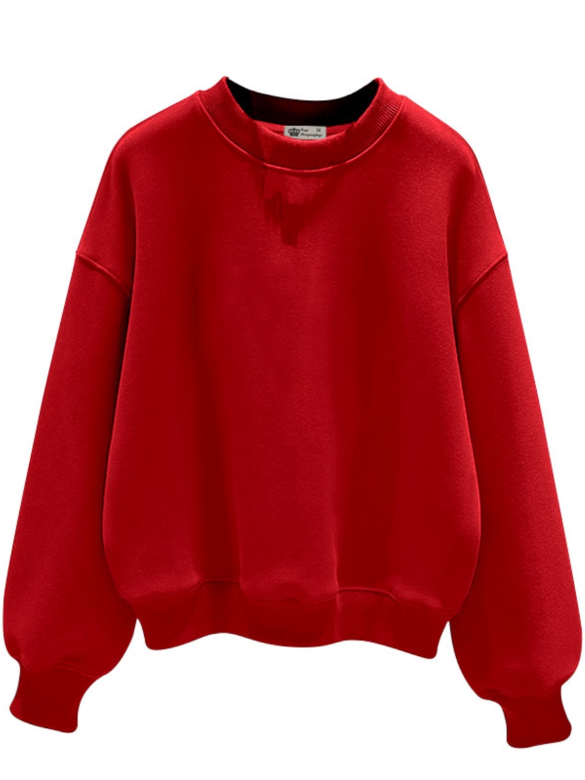 纯红色圆领短款卫衣女2025春秋冬宽松慵懒风加绒加厚长袖套头潮
