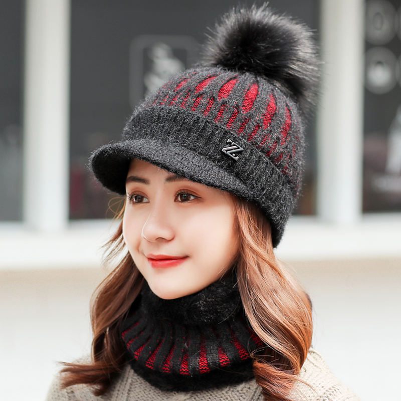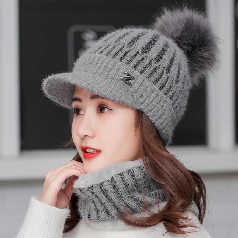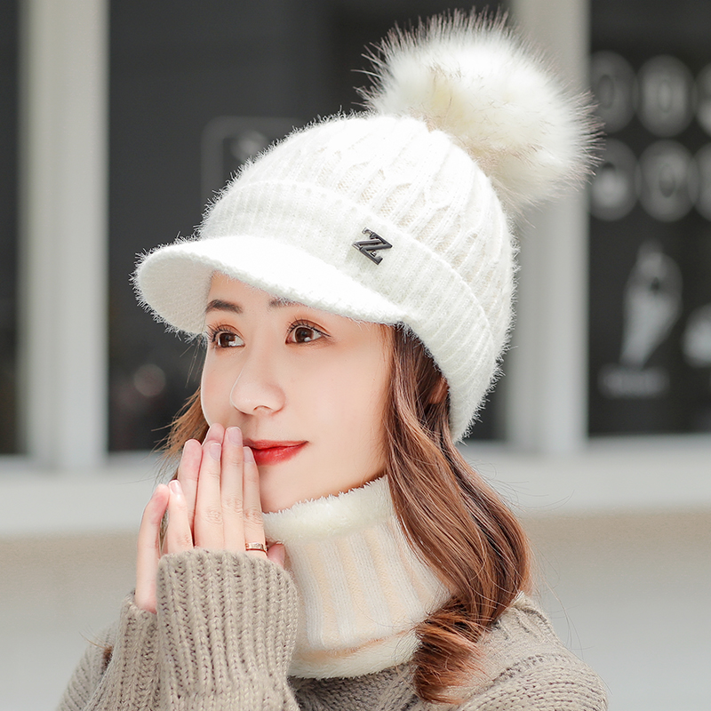 帽子女韩版潮秋冬百搭加厚鸭舌帽冬天骑车防风保暖加绒针织毛线帽