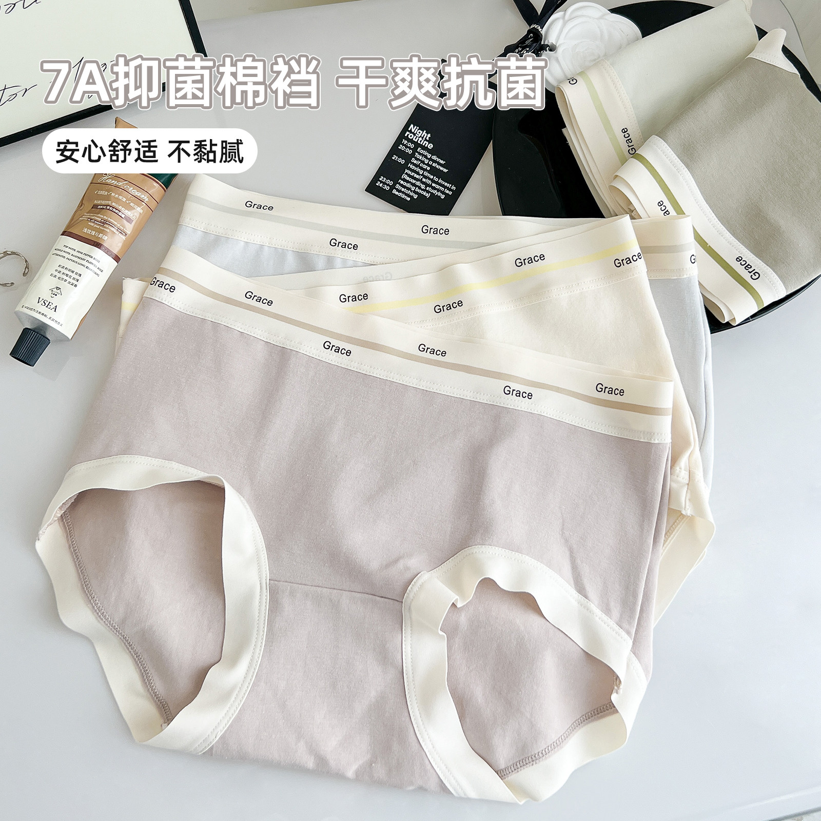 六只兔子3条装内裤女7A抗菌纯棉透气裆阳光棉女士三角裤中腰裤头