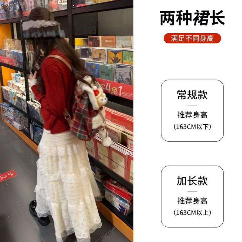 白色蕾丝半身裙女春秋冬2026年高腰显瘦宽松中长款a字蓬蓬蛋糕裙