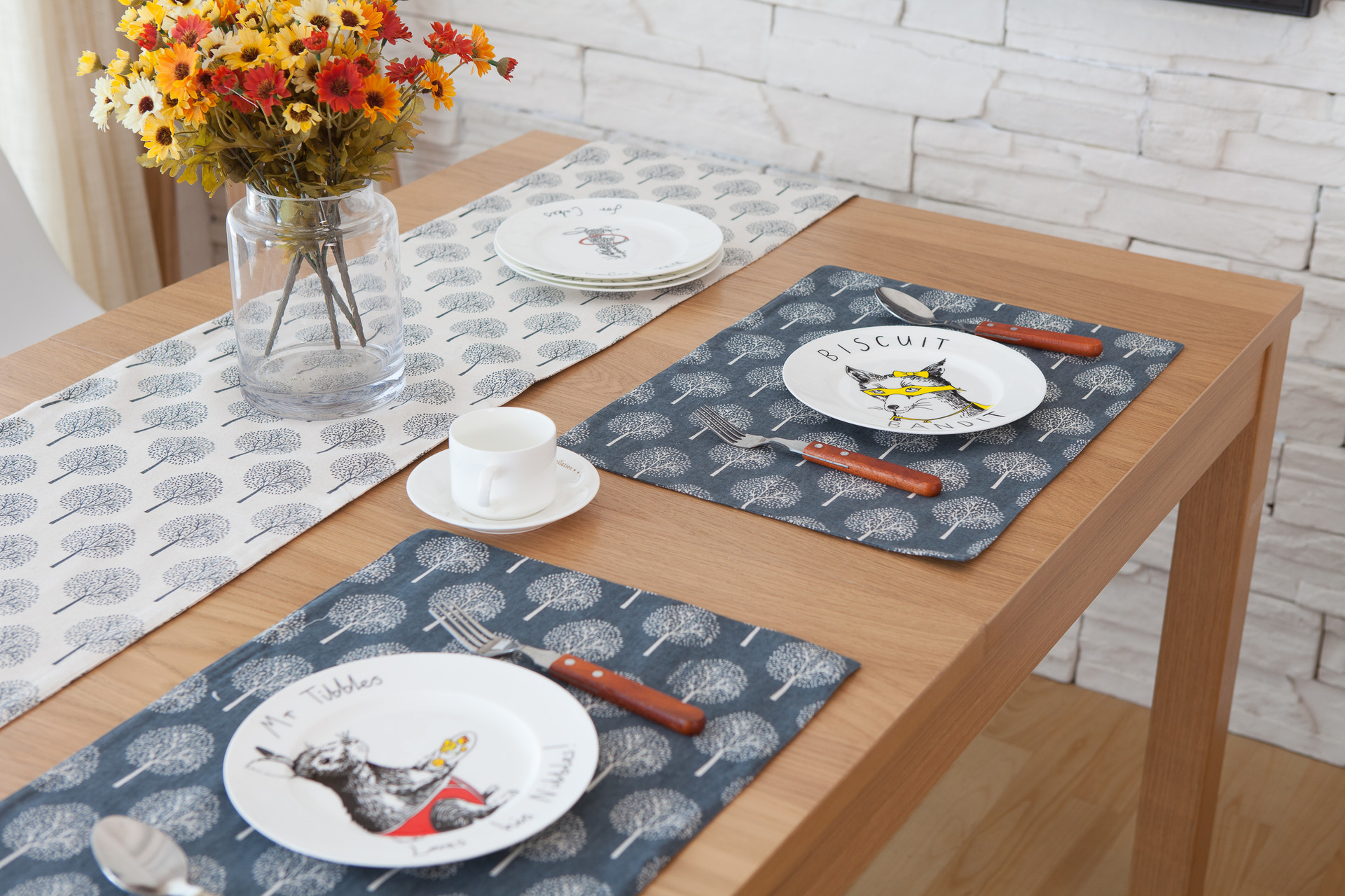 日式餐桌垫盘垫 创意黑白小树棉麻布艺西餐垫欧式盘子垫碗隔热垫