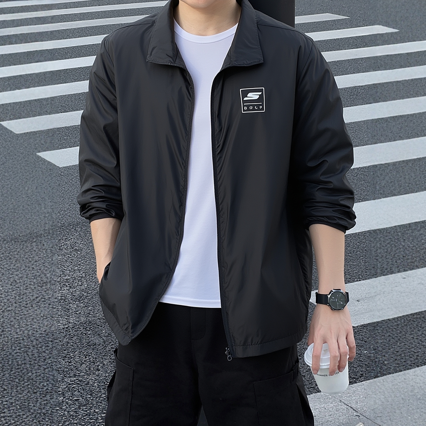 斯凯奇外套男款2025春秋季新款黑色显瘦上衣时尚潮款运动夹克上衣