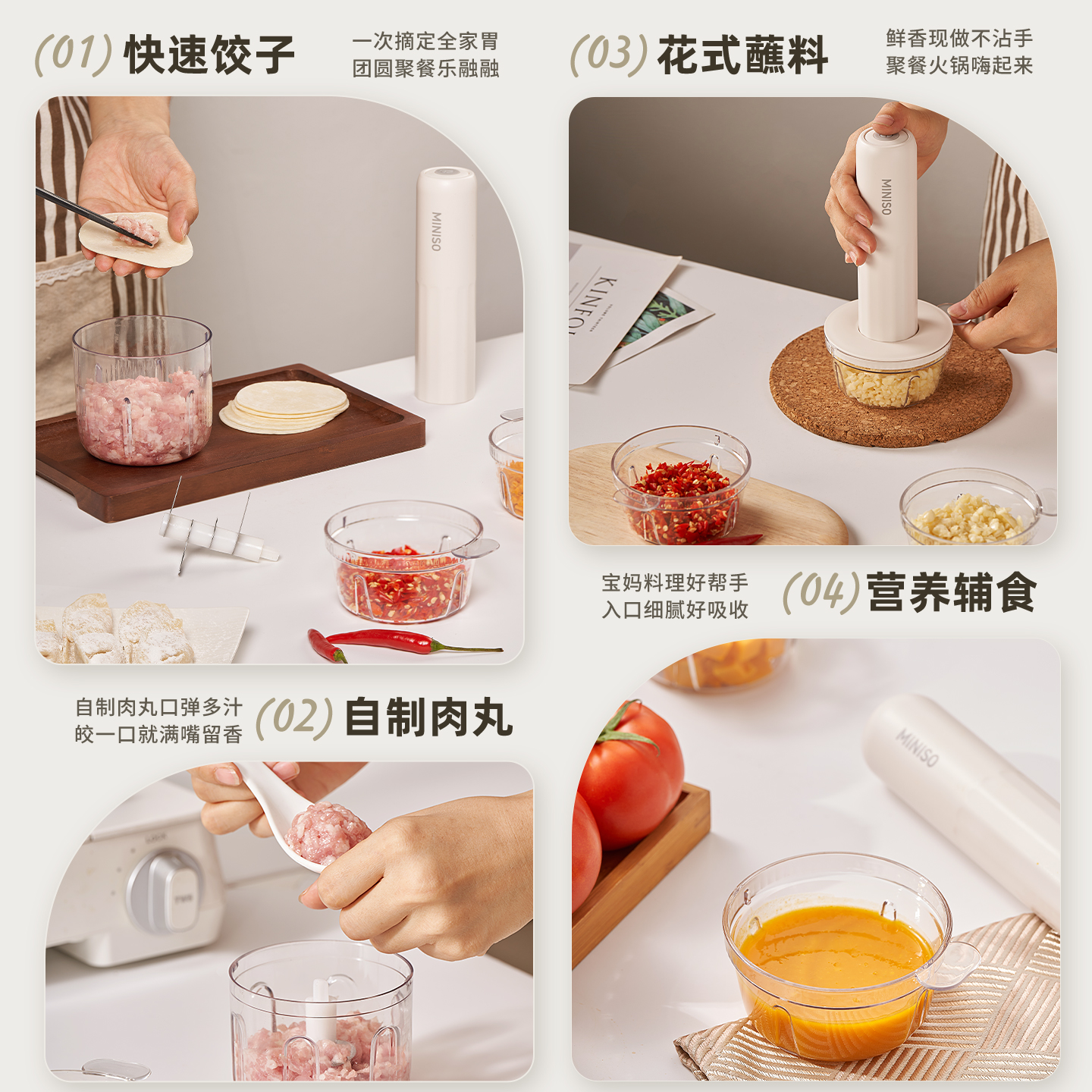 MINISO电动绞肉机小型多功能料理机家用自动捣蒜器无线佐料机辅食