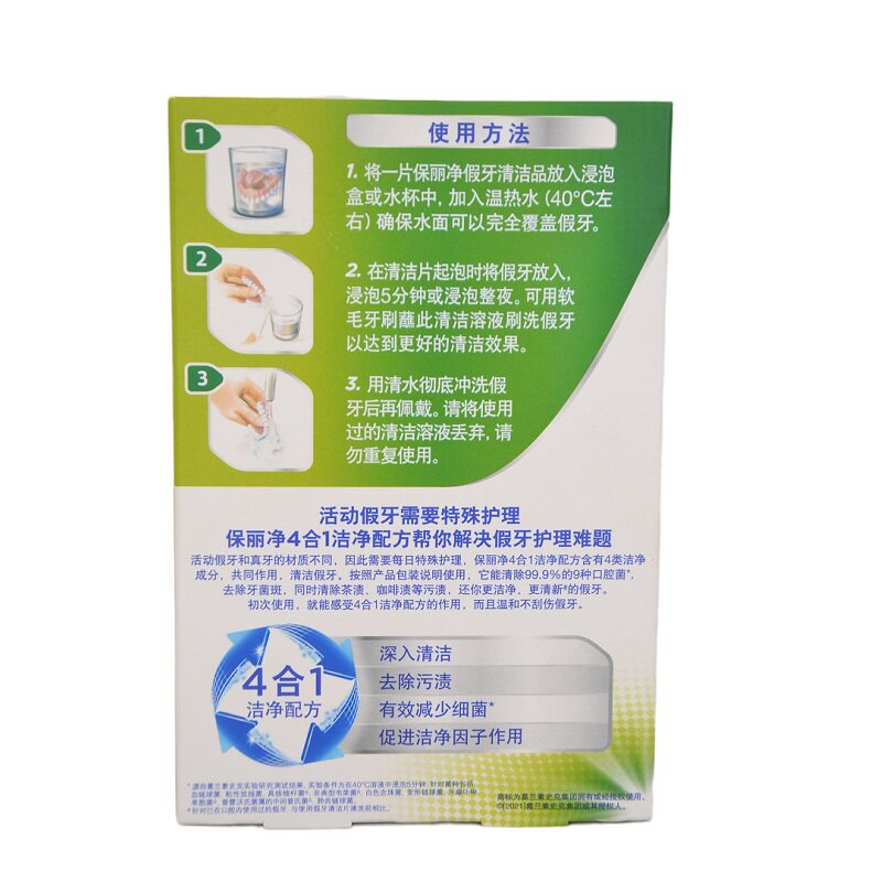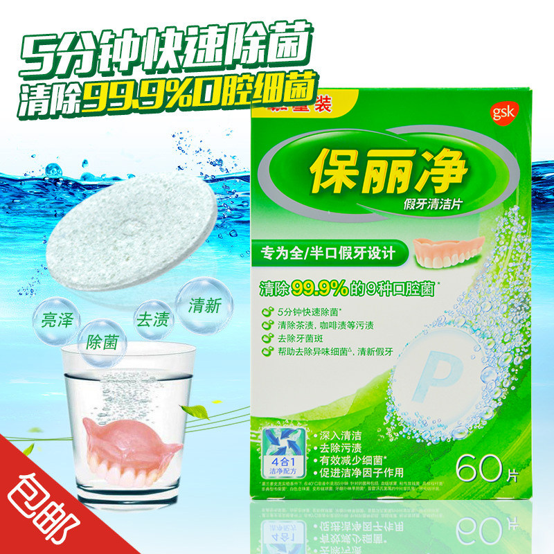 60片保丽净假牙清洁片全/半口牙套清洗片3盒送义齿刷 2盒送假牙盒