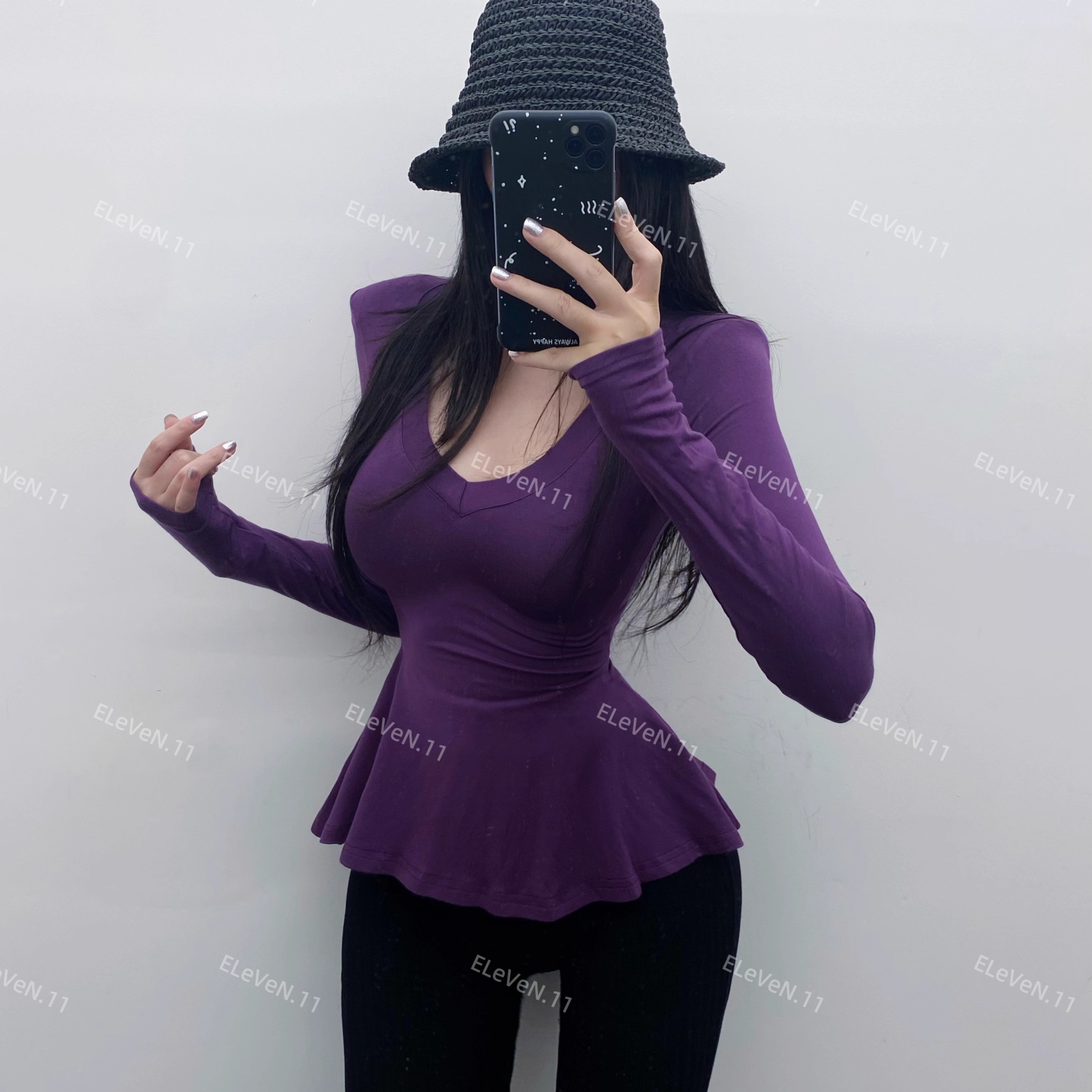 版型巨显瘦!掐腰V领正肩长袖T恤