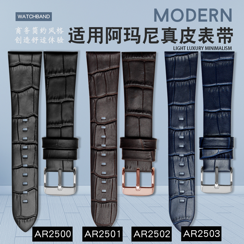 适用阿玛尼真皮手表带 AR2501 2500 2502 2503超薄男表链配件22mm