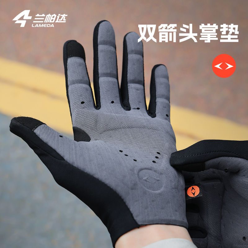 兰帕达双箭头骑行手套长指春秋冬抓绒保暖男女户外公路自行车绒辉