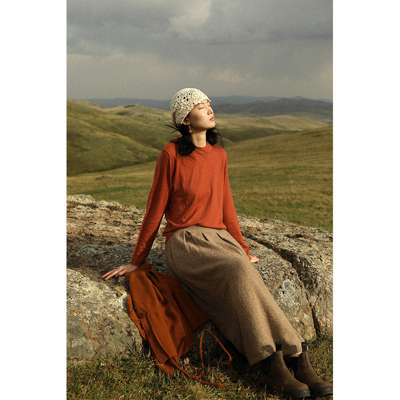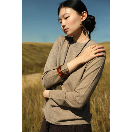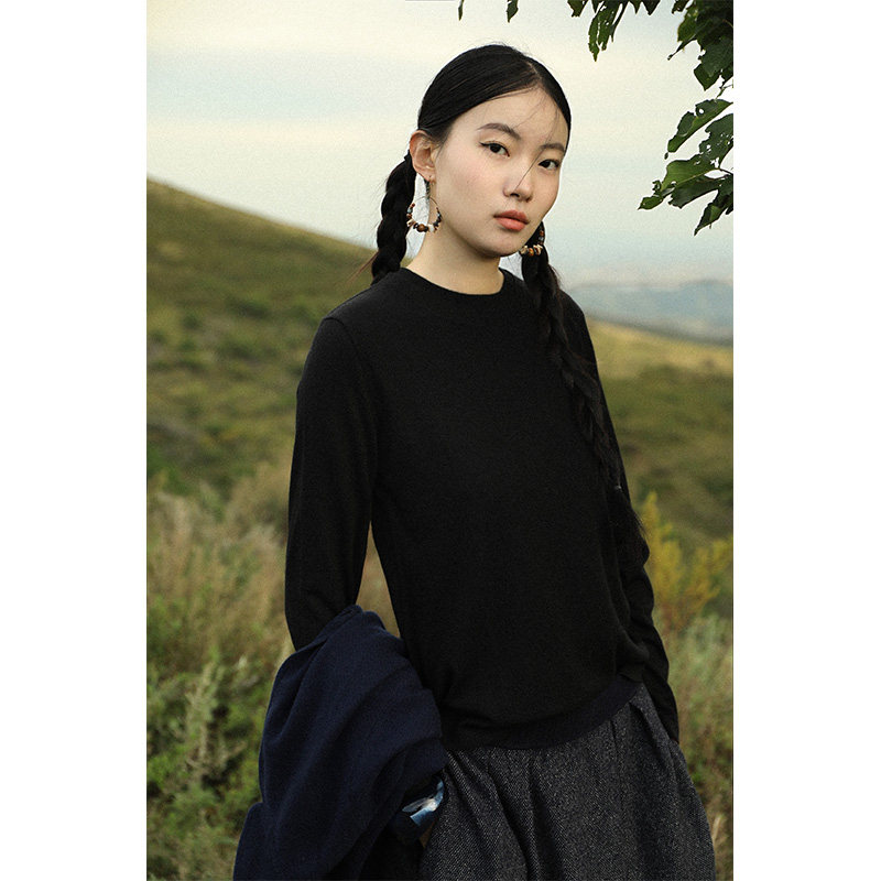 【长期主义】云栖橪72/3精纺纯羊绒双层圆领百搭针织打底衫女秋冬