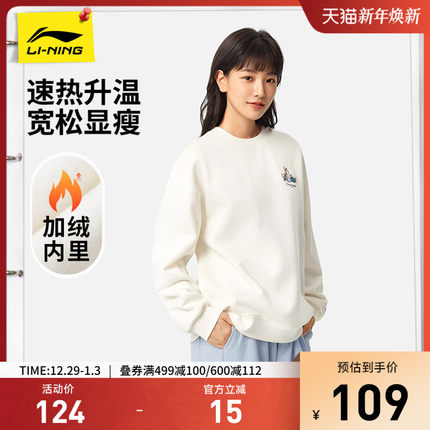 李宁卫衣女士百搭新款长袖圆领上衣秋季休闲加绒保暖女装运动服