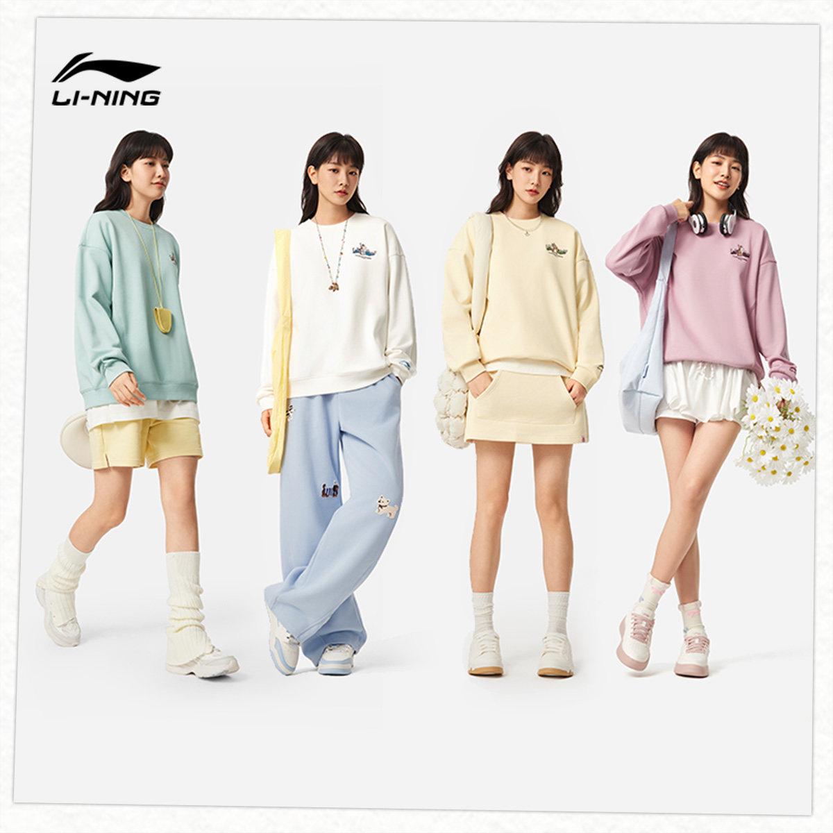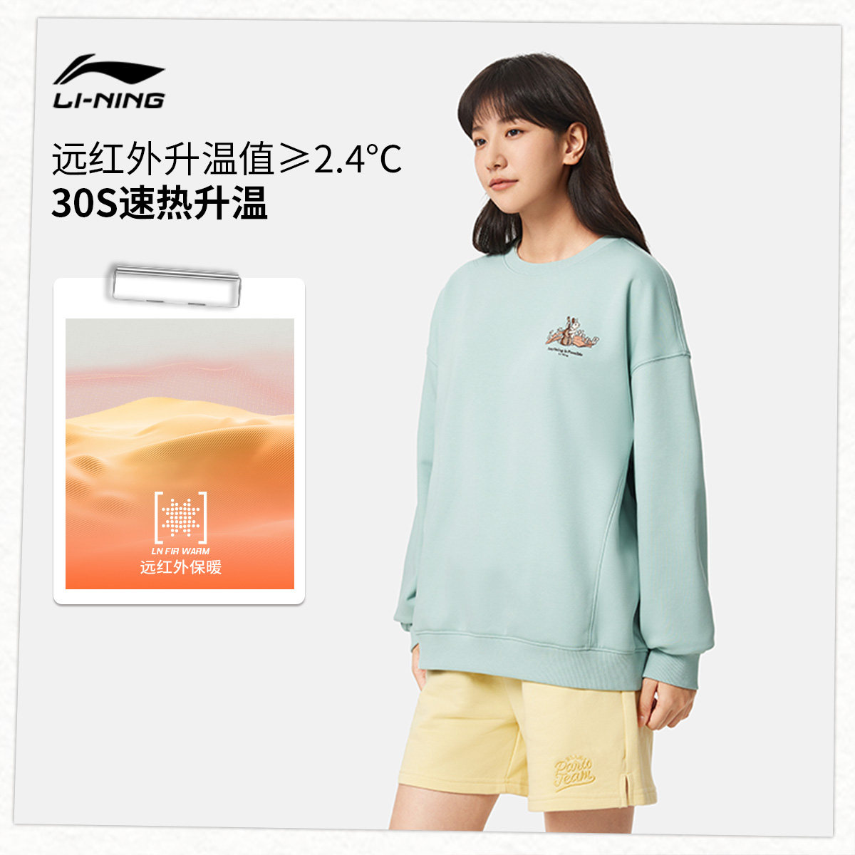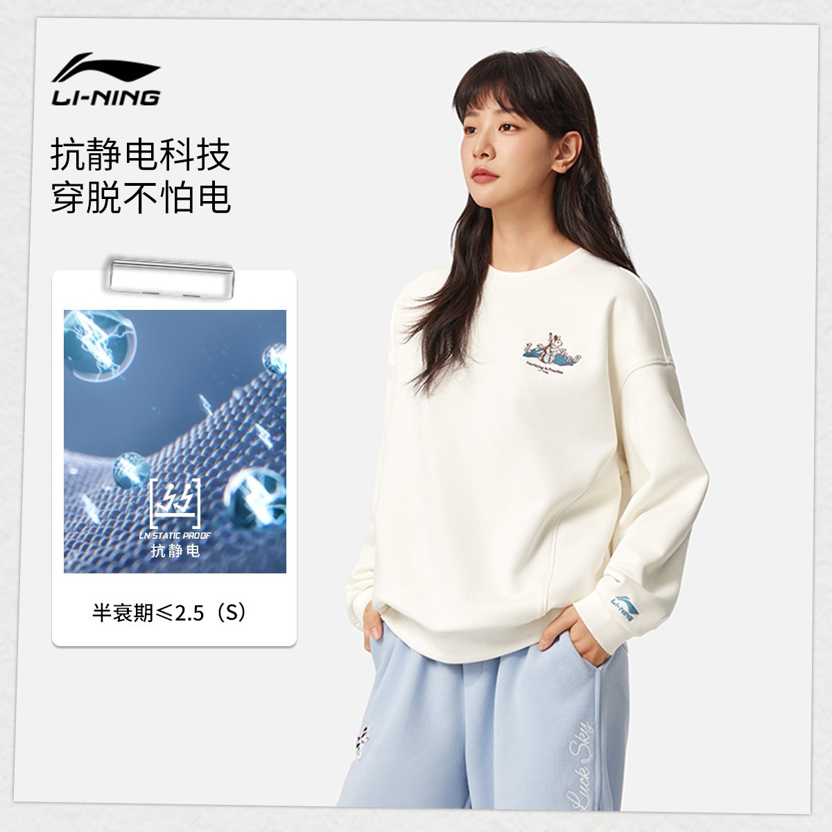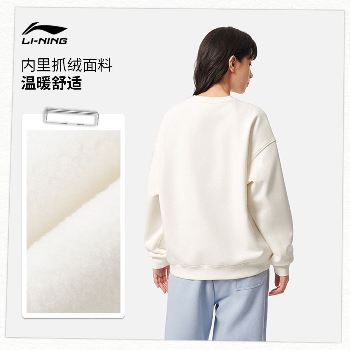 李宁抗菌宽松圆领女套头无帽卫衣