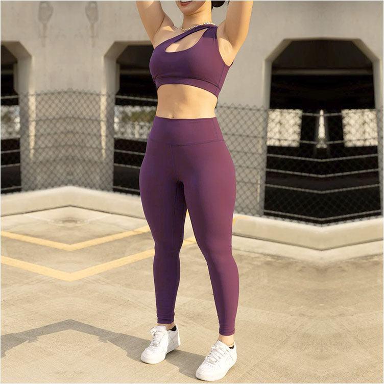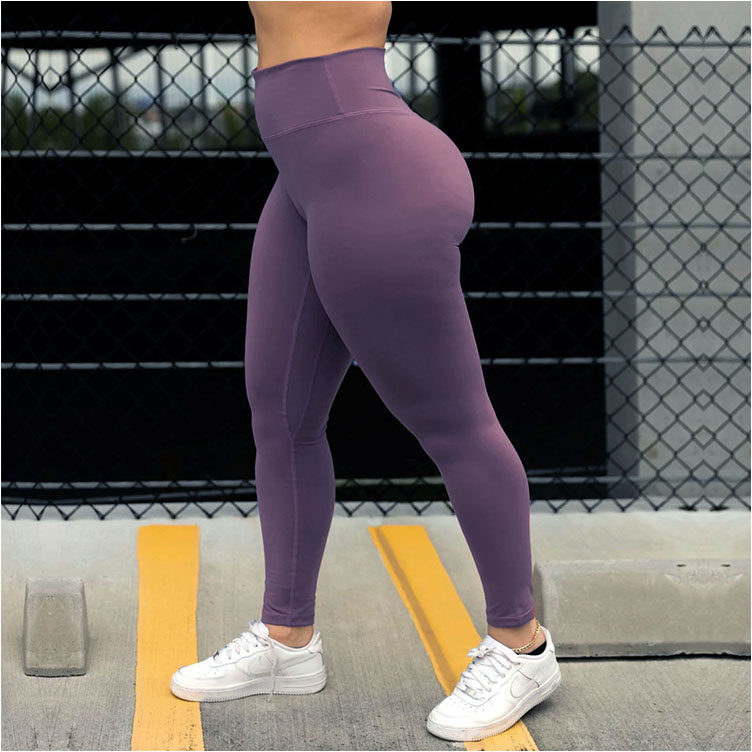 外贸瑜伽长裤 女紧身速干透气高腰提臀跑步运动裸感九分裤 深紫