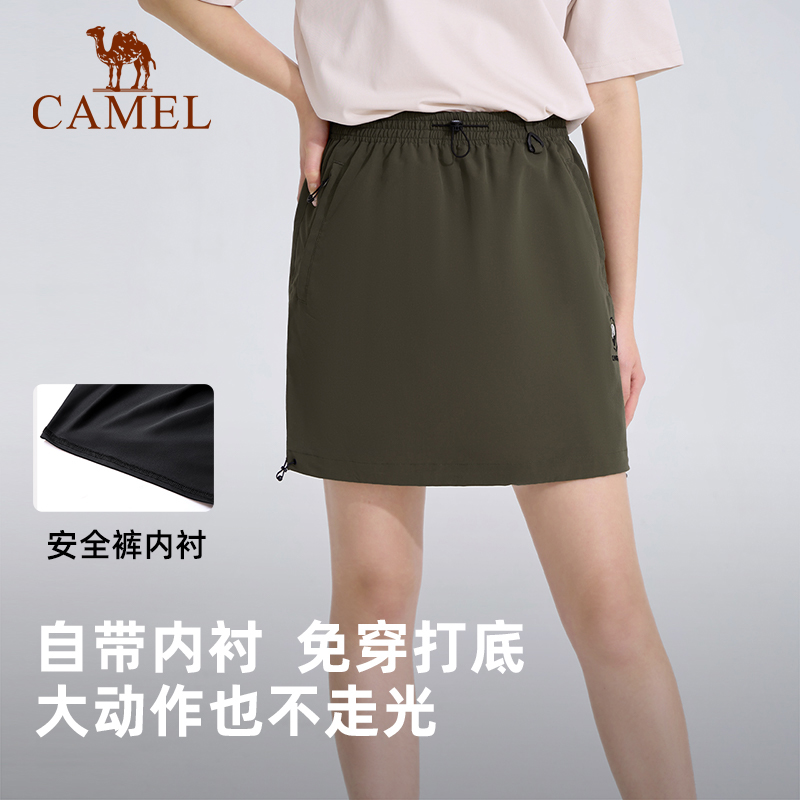 骆驼熊猫系列户外速干短裙女夏季山系运动工装直筒裙子防晒透气