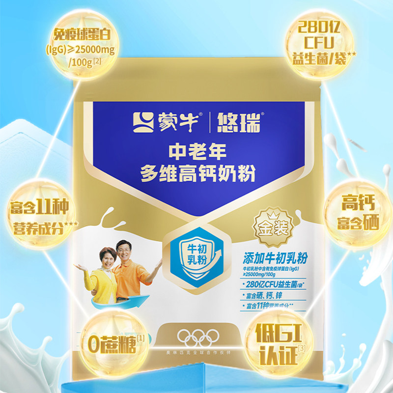 蒙牛金装中老年多维高钙奶粉400g*4袋小条装老人早餐牛奶粉大日期