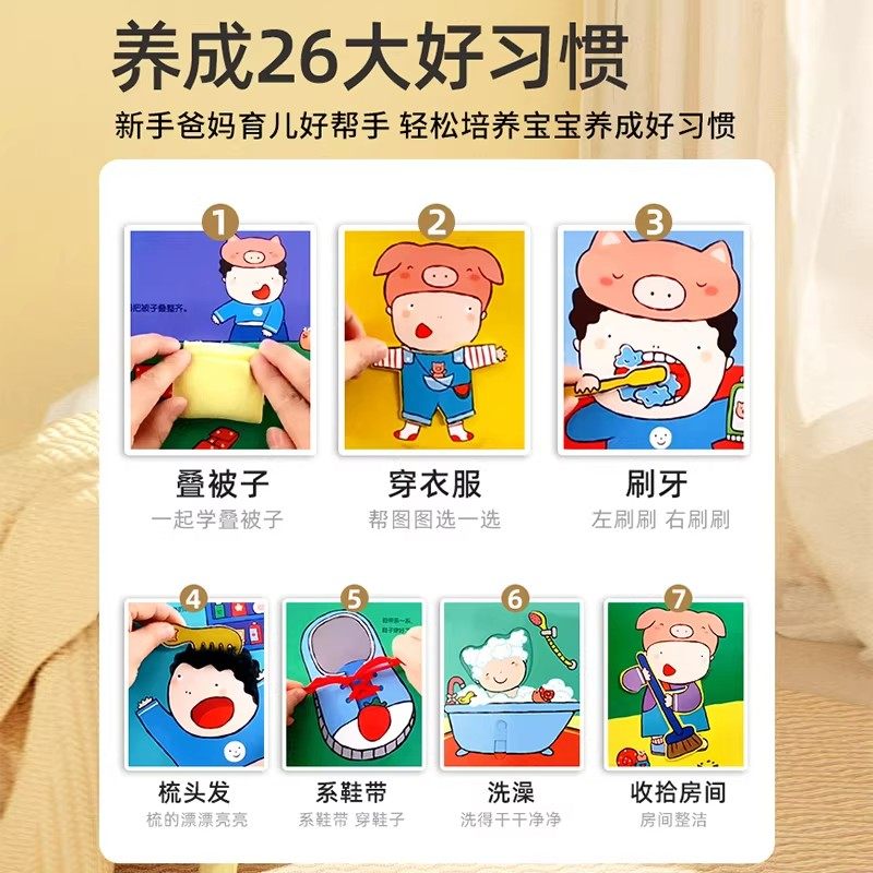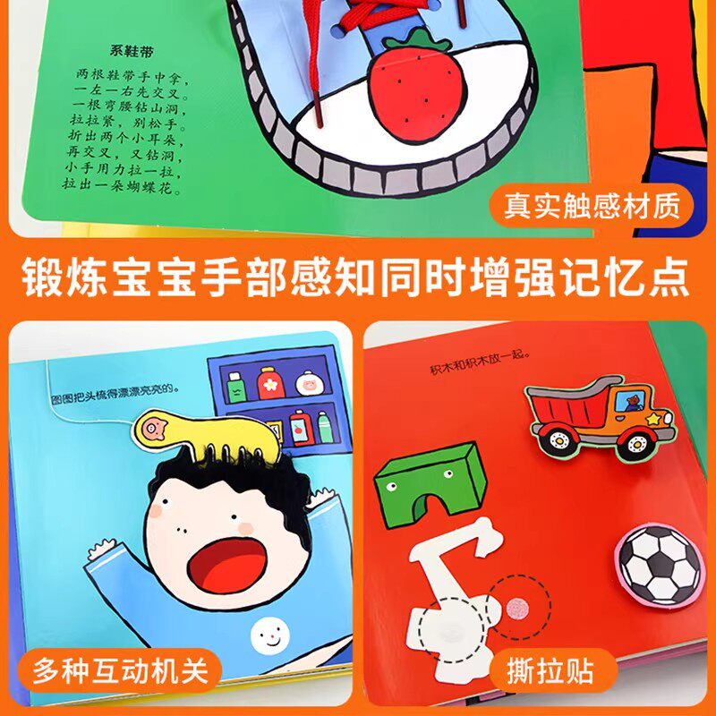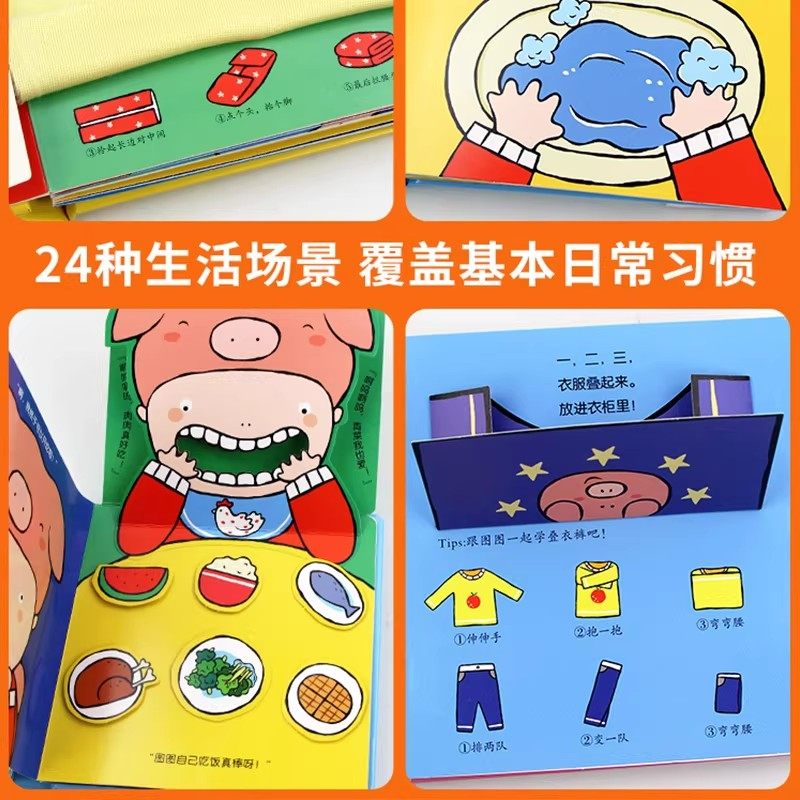 小猪图图好习惯养成玩具书 宝宝触摸书洞洞书婴儿早教启蒙绘本宝宝3D立体机关书幼儿启蒙早教1-2-3岁撕不烂翻翻书儿童动手能力培养