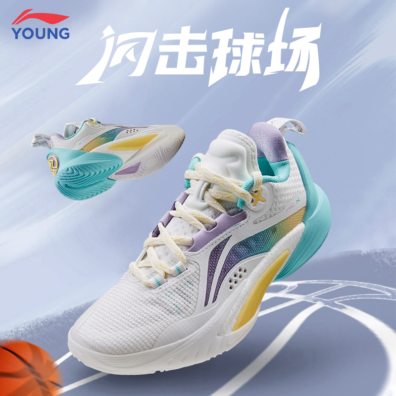 李宁童鞋中大童新品闪击10缓震回弹橡胶低帮稳定篮球鞋YKBU112