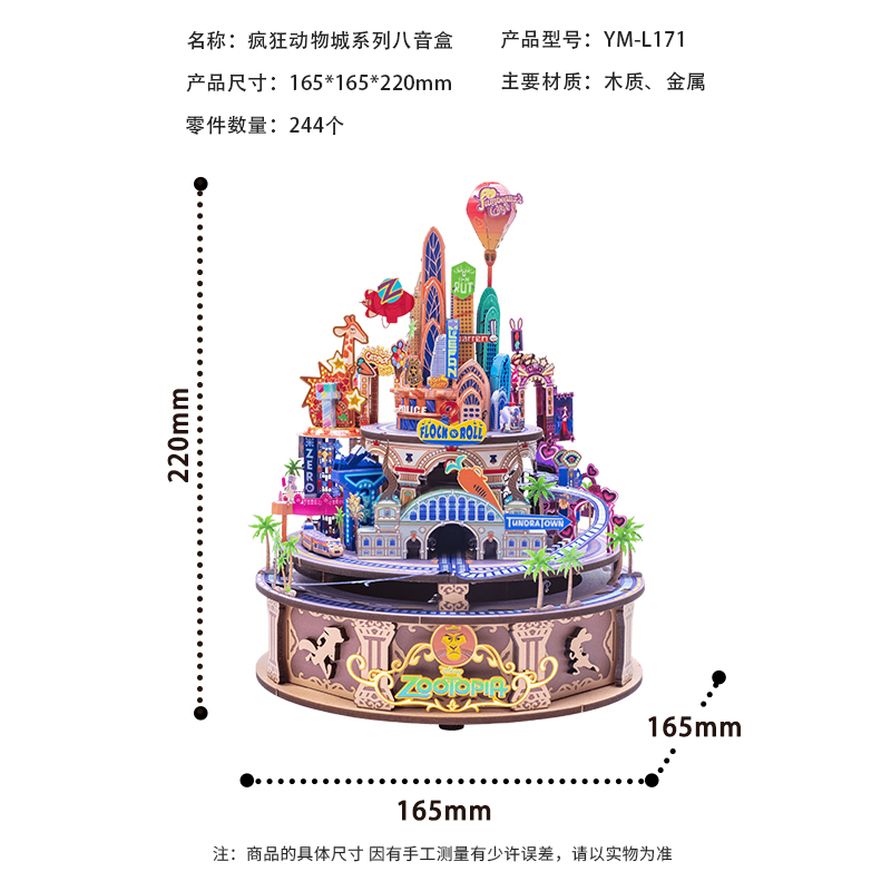 迪士尼疯狂动物城八音盒3D立体拼图音乐盒拼装积木手工周边礼物