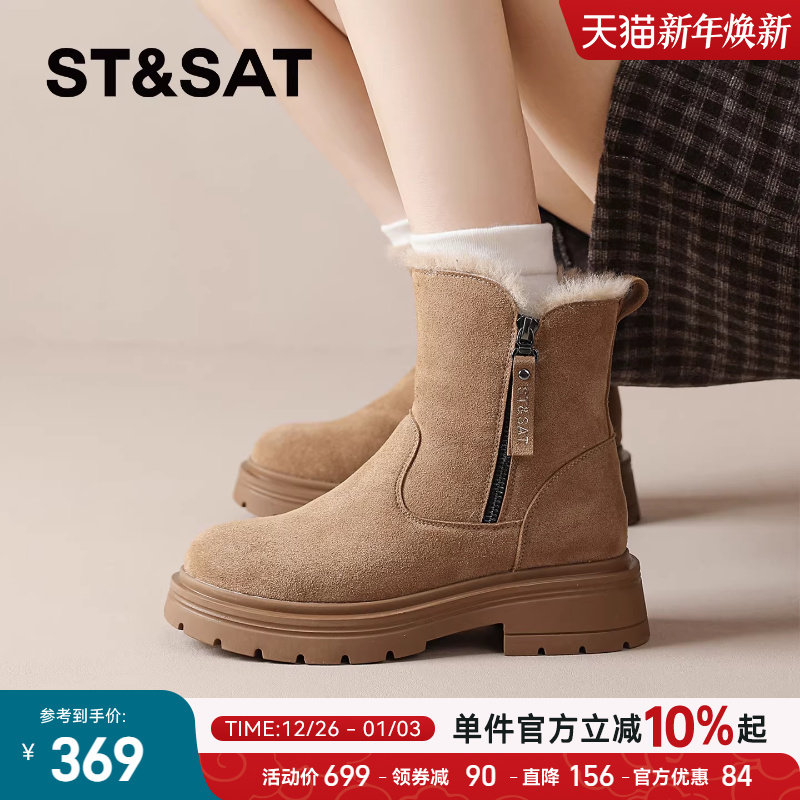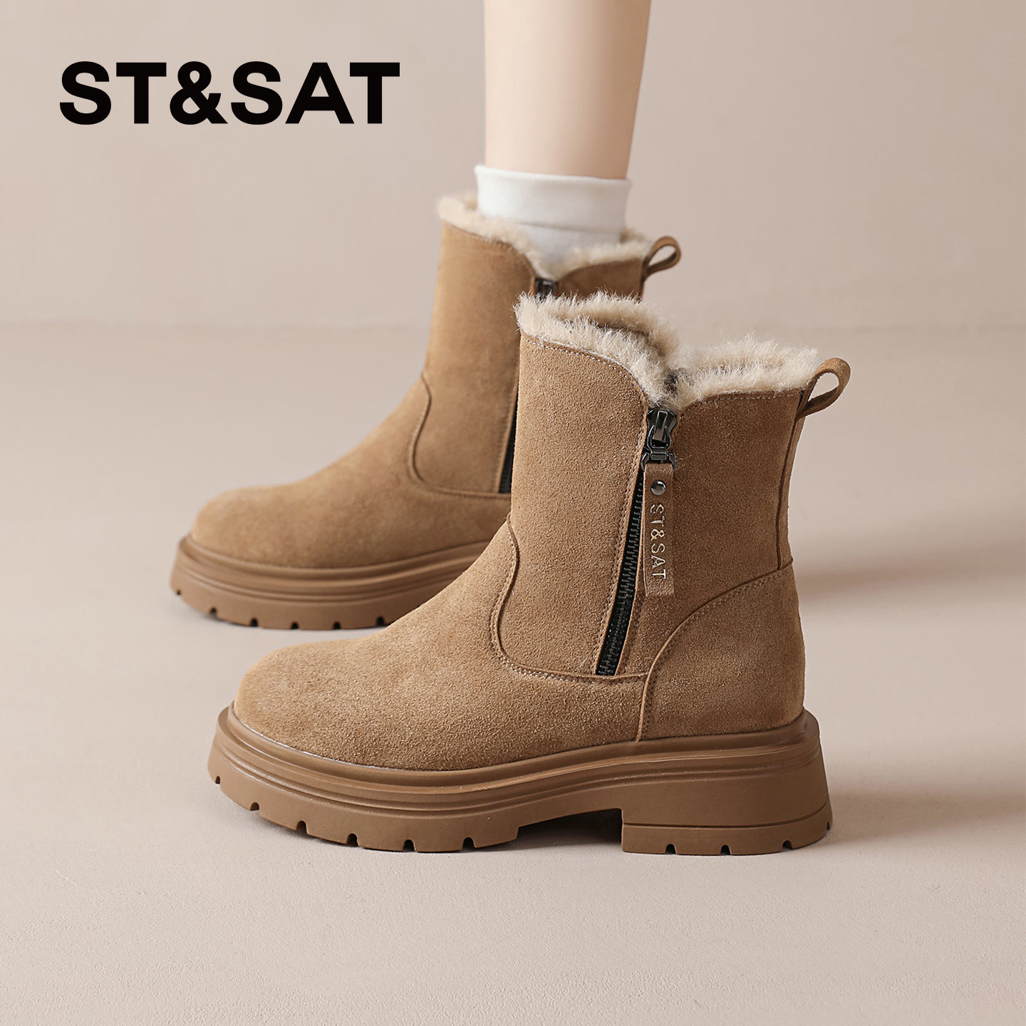 星期六真皮雪地靴女2025新款冬季加绒加厚保暖棉靴厚底短靴马丁靴