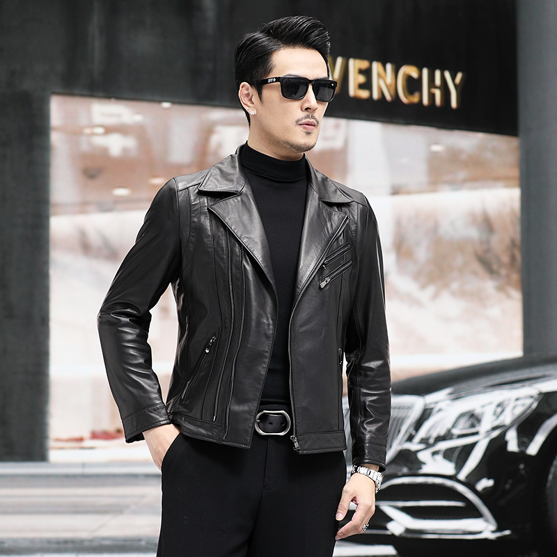 海宁真皮男装头层牛皮皮衣男士机车款修身短款西装领皮夹克帅气潮