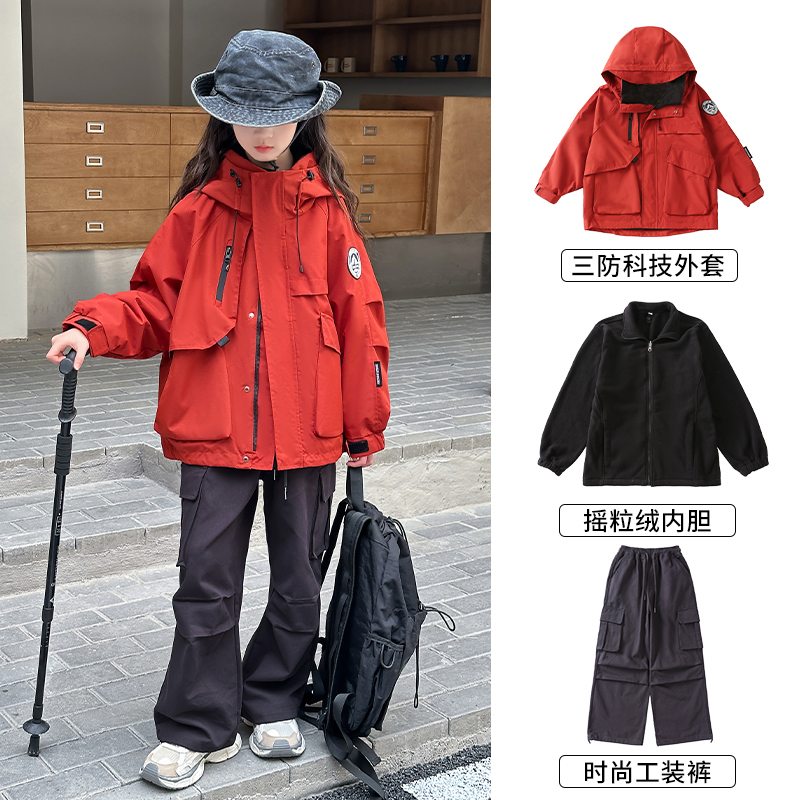 女童冲锋衣2025新款春秋装儿童洋气中大童女孩户外登山服工装外套